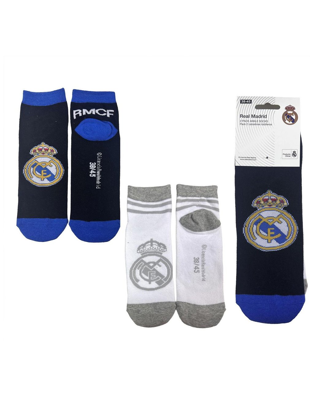 Krátké ponožky Real Madrid – 2x pack (vel. 38–45).