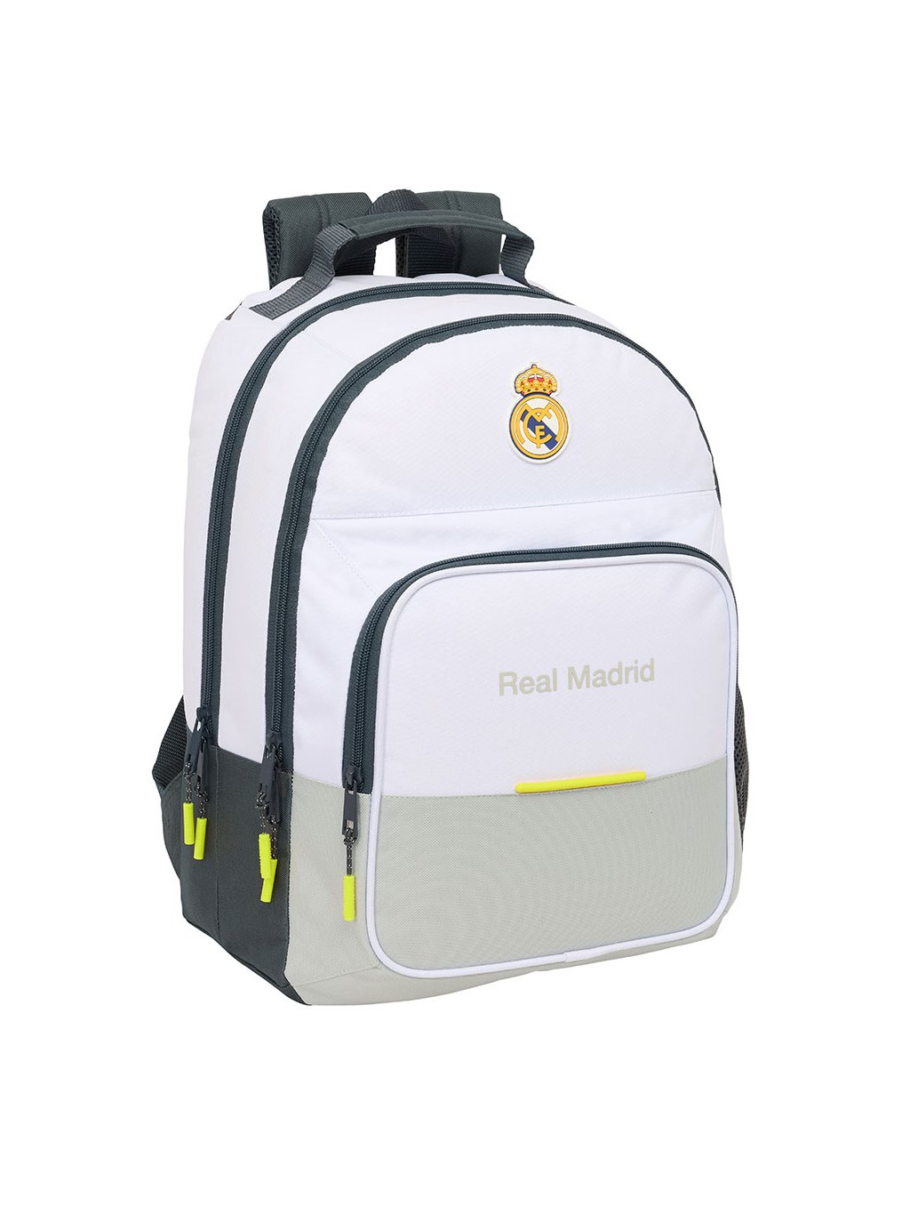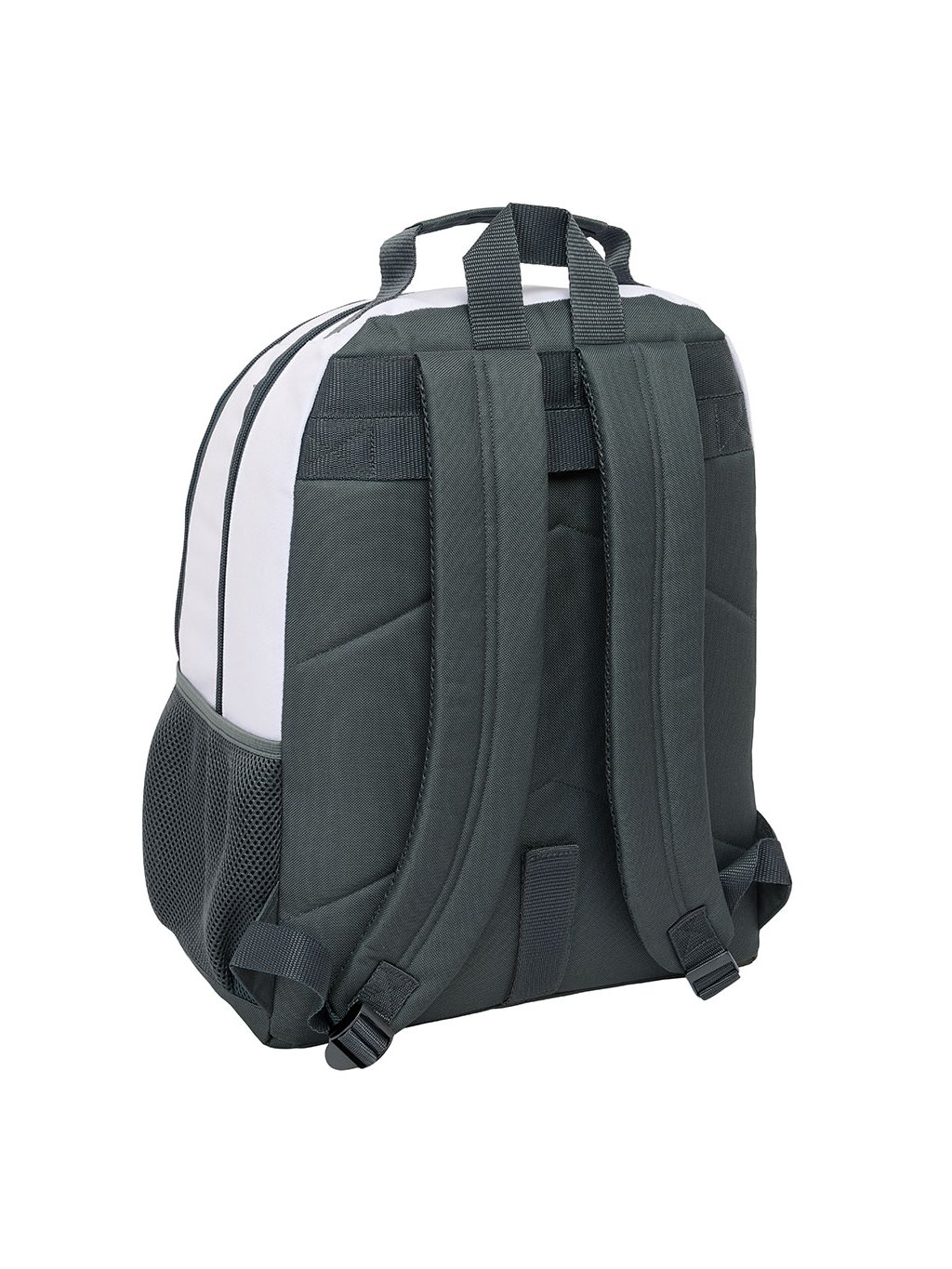 Dvojitý batoh Real Madrid je doporučený pro fanoušky fotbalu. Nabízí boční kapsu na láhev, dva velké hlavní oddíly s dvojitými zipy pro snadné otevírání a prostornou přední kapsu. S rozměry 320 × 160 × 420 mm a objemem 21,5 litrů poskytuje dostatek místa pro vše potřebné.