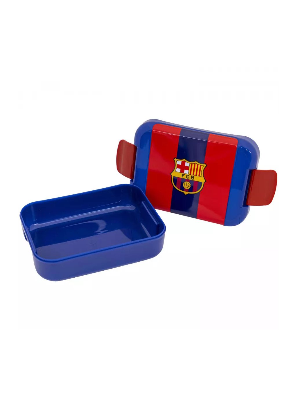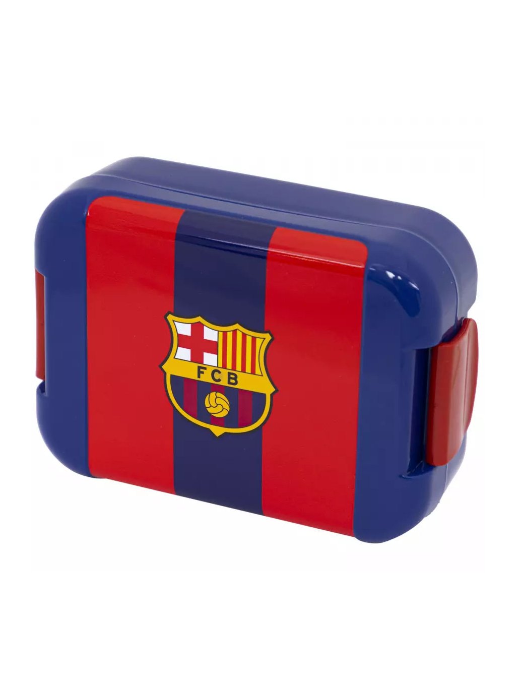 FC Barcelona svačinový box – praktická krabička na svačinu pro všechny fanoušky Barçy. Uzavírá se na boční zacvakávací klipy, je vyrobena z kvalitního plastu PP bez BPA a má objem cca 450 ml. Rozměry 17 × 12 × 6 cm, lehká, odolná a ideální do školy, na výlet i trénink.