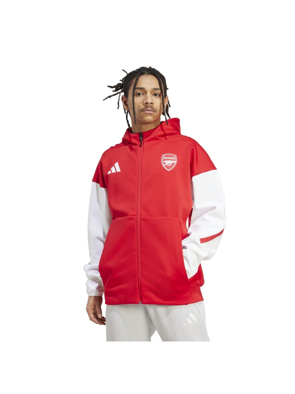 Připravena na všechno. Design ADIDAS Z.N.E. této hymny Arsenalu z ní dělá ideální svršek na zapínání, když se chystáte zazářit. Její prostorná kapuce a měkká tkanina z dvojité pleteniny udrží hráče klubu v pohodě, když se řadí před velkými fotbalovými zápasy. Týmový odznak na hrudi a nápis "Arsenal" v horní části kapuce ti umožní dát najevo svou vášeň pro Gunners.