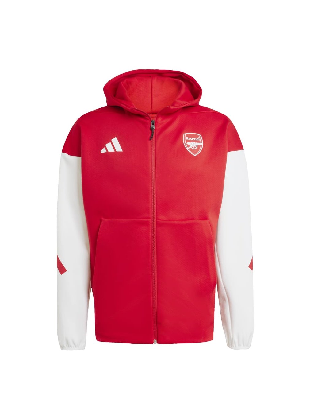 Pohodlná mikina s kapucí, kterou hráči Arsenalu nosí v předzápasové sestavě.