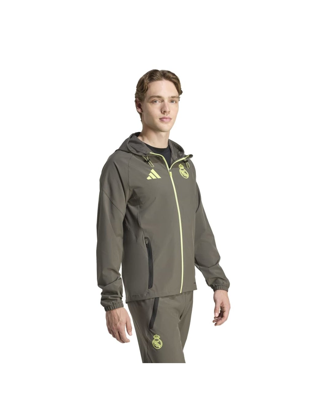 Fotbalovou hrdostí jen září. Znak Realu Madrid na této bundě adidas je jen jedním z výrazných detailů s reflexním potiskem. Mezi další funkční prvky patří stahování kapuce a zip s pevným jezdcem a obrácenými zuby. Díky strečovému materiálu a savému AEROREADY se budeš pohybovat s lehkostí vánku, kamkoli tě tvá krásná hra zavede.