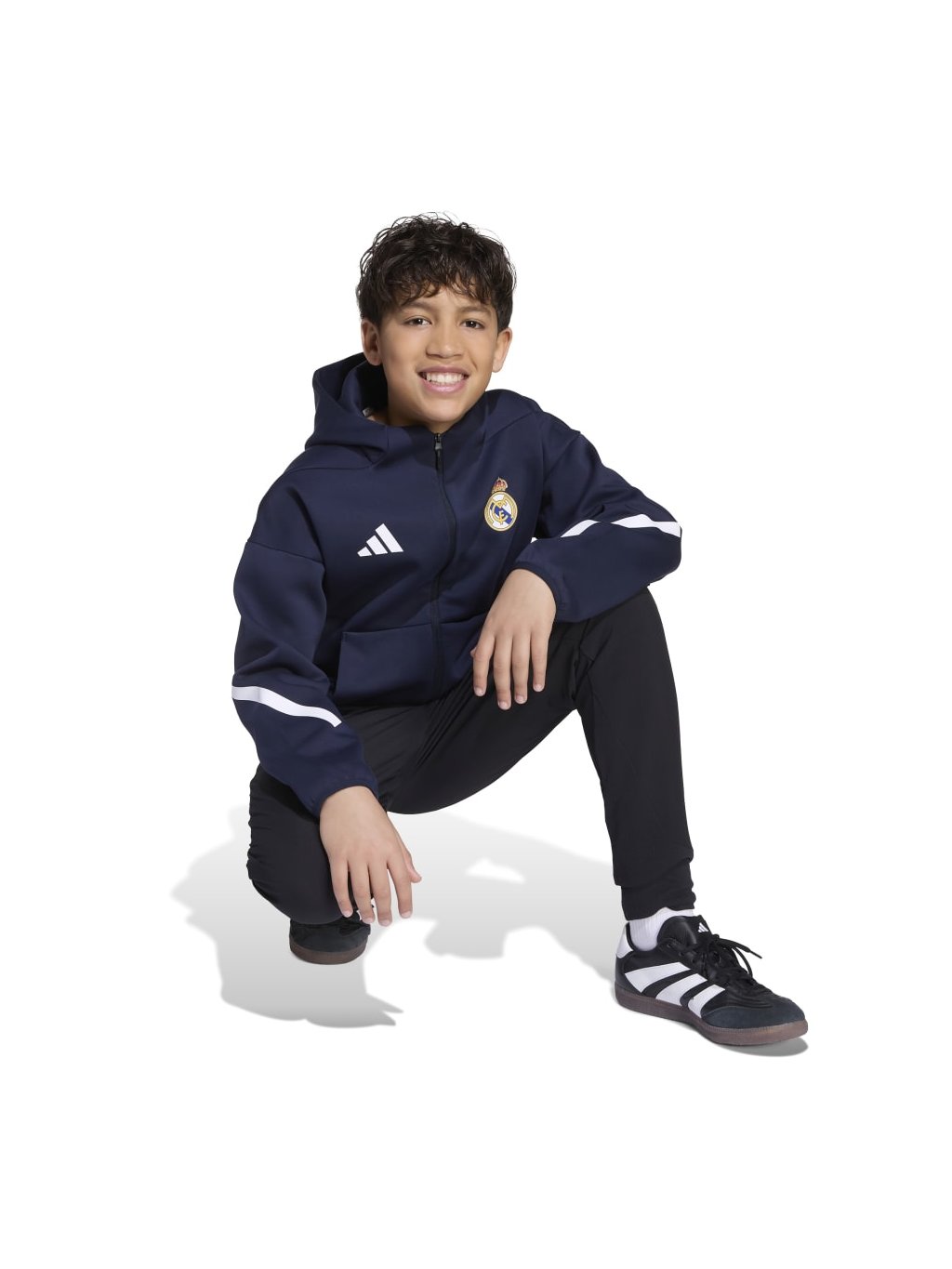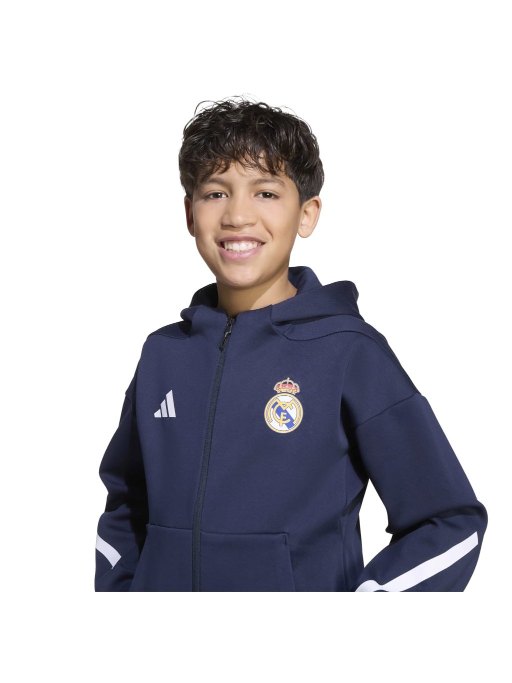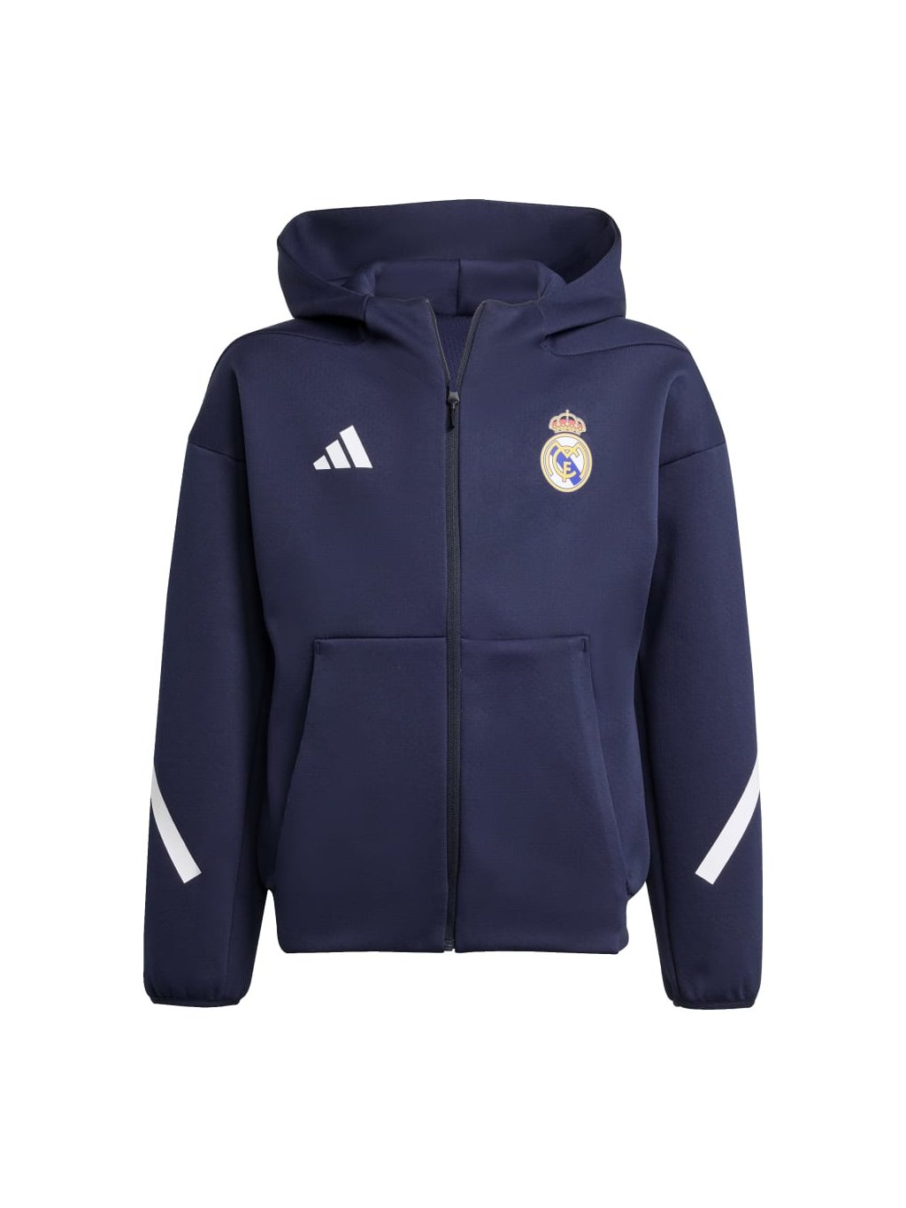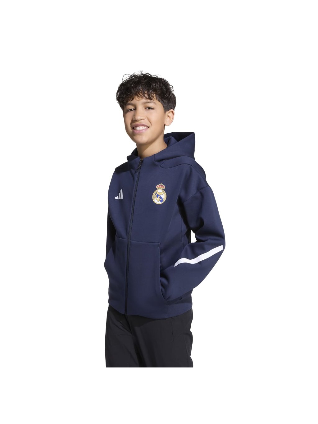 V této bundě Realu Madrid od ADIDAS Z.N.E. se budeš moci soustředit jen na svůj výkon. Juniorská verze fotbalové mikiny s kapucí, kterou hráči nosí při nástupu na hřiště, je vyrobená z měkkého úpletu s dvojitou vazbou, který ti dopřeje pohodlí. Nad prostornou kapucí se vyjímá klubová grafika, která bude malým fanouškům Realu Madrid slušet.