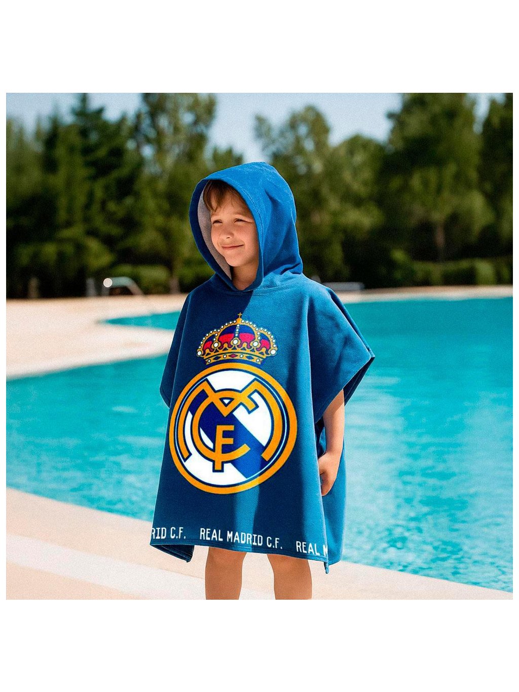Praktické dětské pončo Real Madrid s výrazným klubovým znakem je ideální k bazénu, na pláž nebo po koupání doma. Modré provedení s velkým logem Real Madrid a kapucí zajišťuje styl i pohodlí.