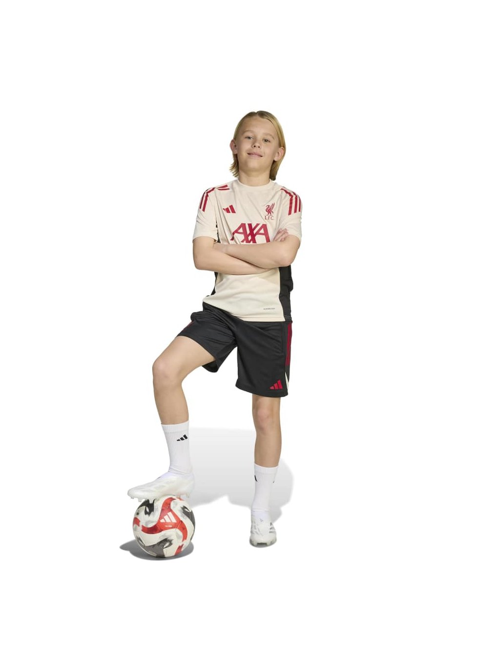 Blýskni se na tréninkovém hřišti v oblečení adidas, ve kterém se hráči FC Liverpool připravují na ligové zápasy. Tyto pohodlné dětské fotbalové šortky využívají technologii AEROREADY, která odvádí vlhkost a pomáhá ti se soustředit, když začne hra nabírat na intenzitě. Nažehlený znak nad lemem hlásá tvou neochvějnou oddanost Liverpoolu.