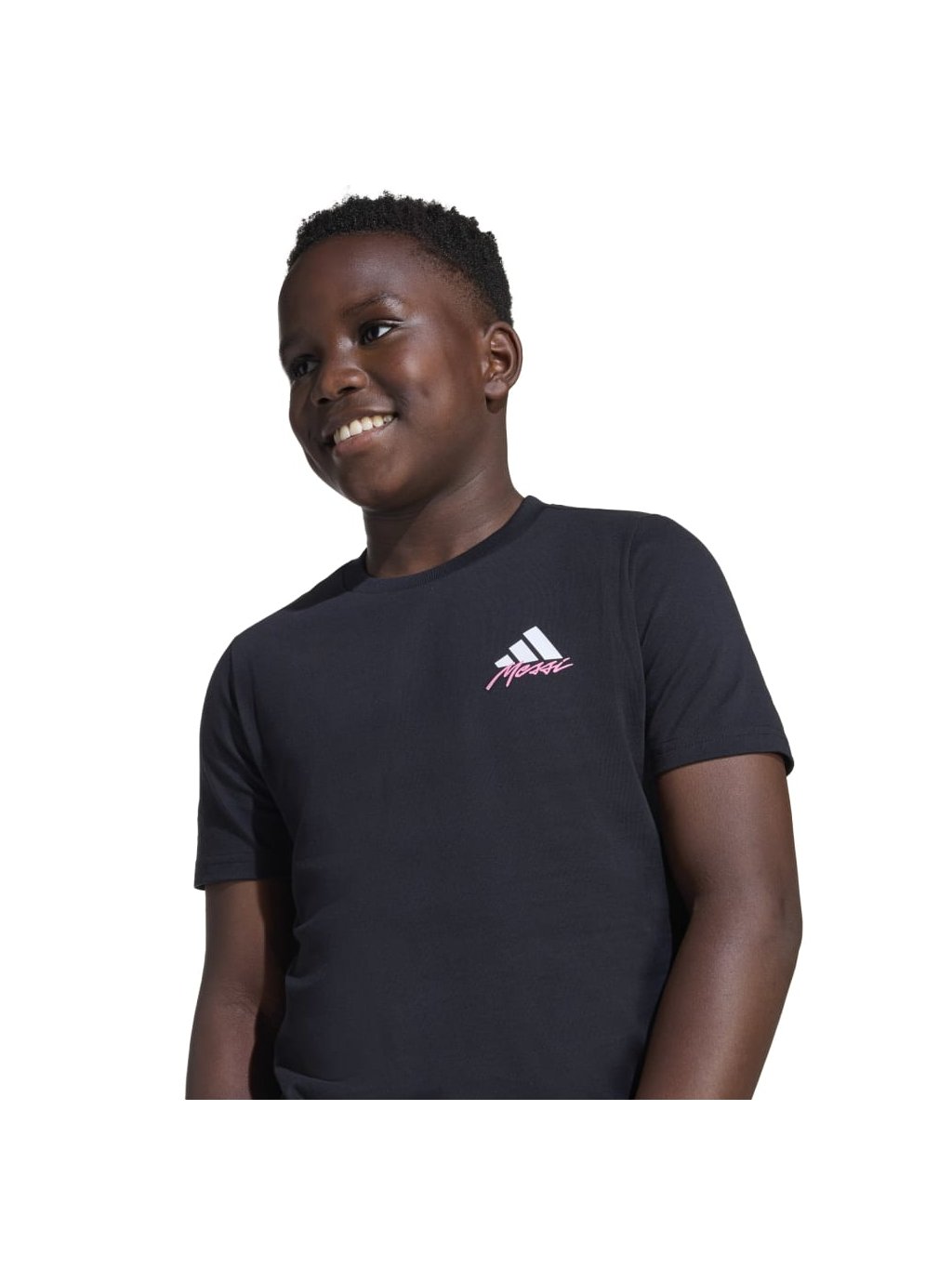 Sleduj, jak oslavují ikonického Lionela Messiho v tomto dětském tričku adidas. Toto fotbalové tričko vyrobené z měkkého bavlněného jednostranného žerzeje nabízí pohodlí, ať je fotbal zavede kamkoli. Zábavná grafika na zadní straně nese barvy Messiho klubu a země.