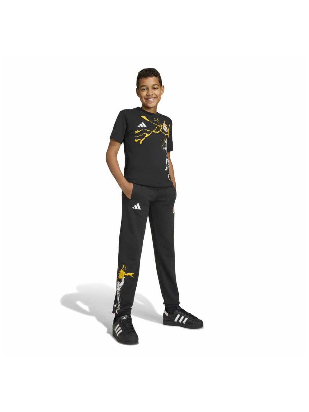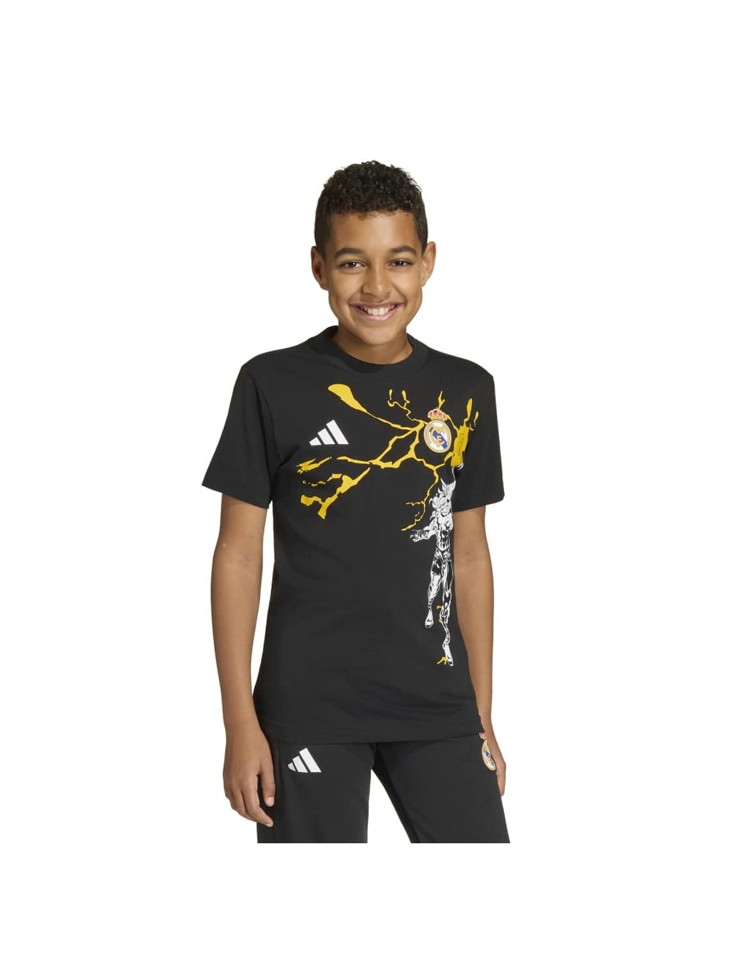 Fotbalové legendy se potkávají se superhrdiny! Toto dětské tričko adidas spojuje svět Real Madrid a Marvel Avengers do jednoho stylového kousku, který nadchne malé fanoušky fotbalu i komiksů. Výrazná grafika dodává energii a motivuje děti snít ve velkém – ať už ve škole, na hřišti nebo při fandění svému oblíbenému týmu.