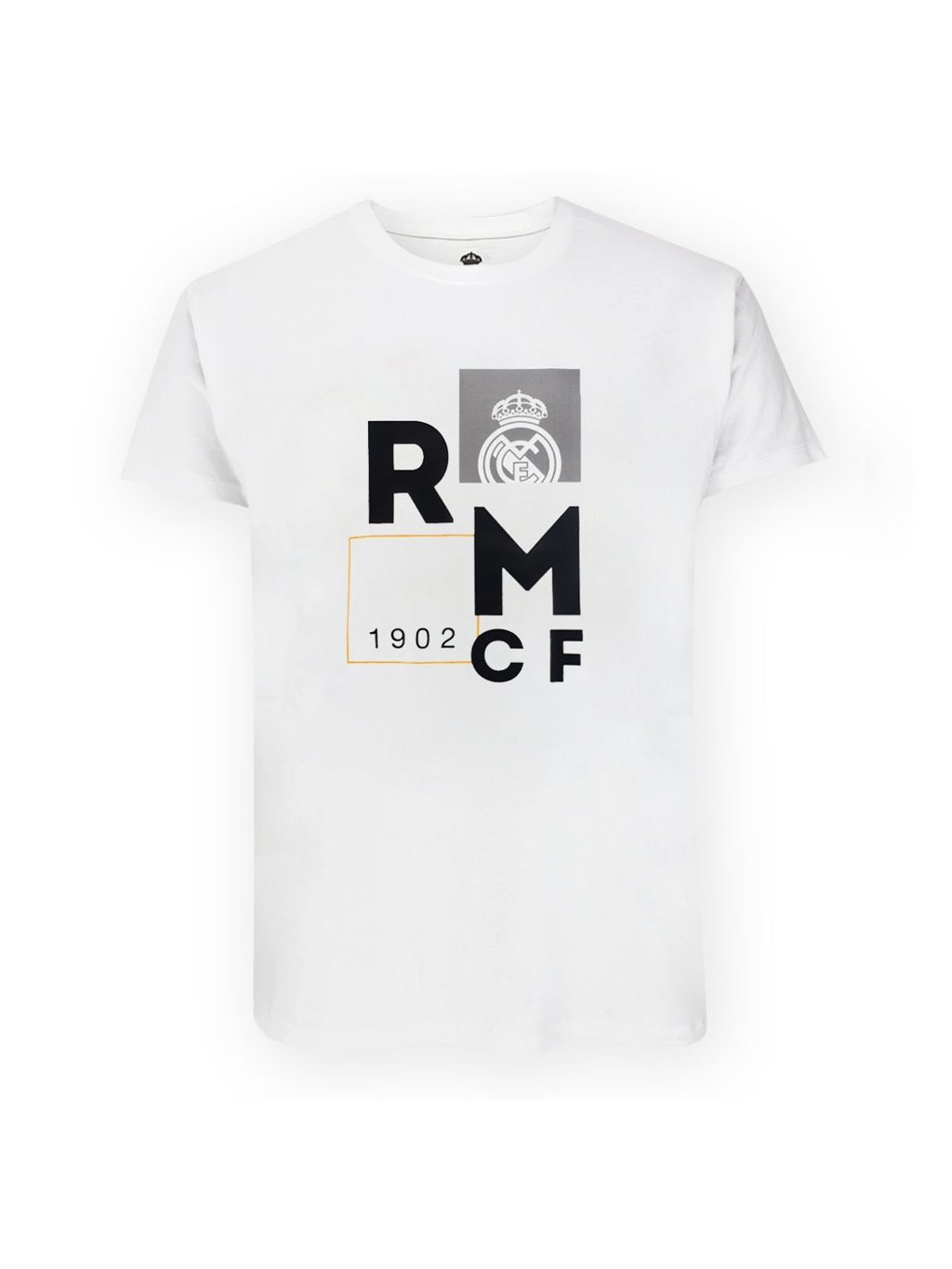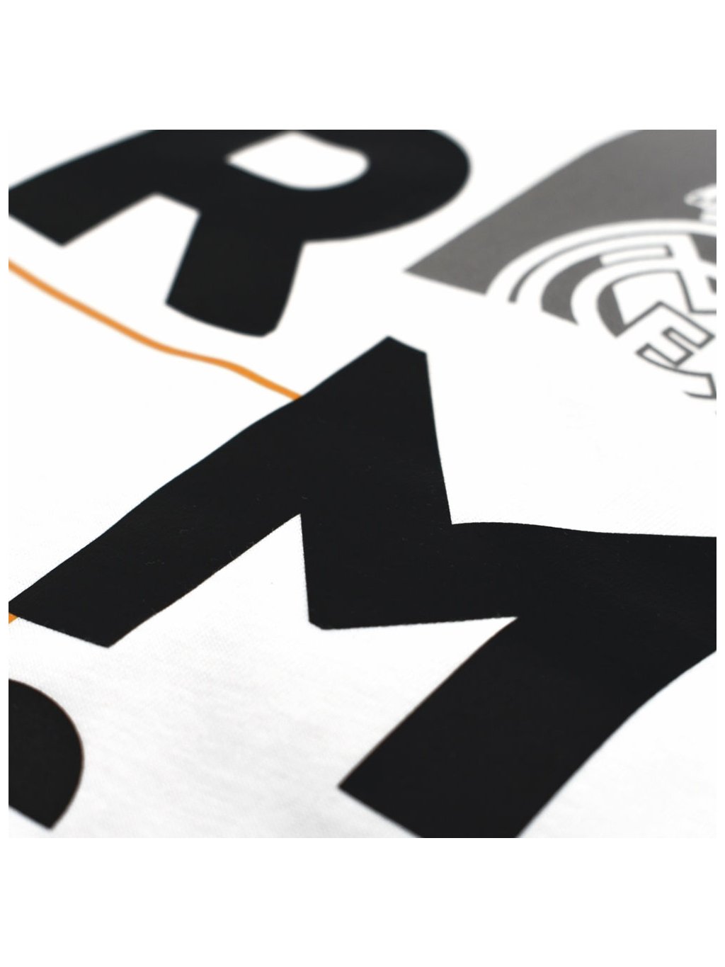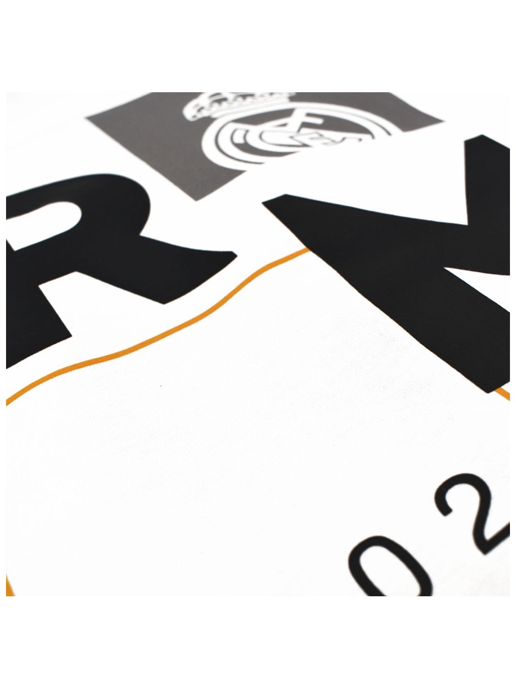Moderní a výrazné tričko pro mladé madridisty, kteří prožívají fotbal naplno. Geometrický potisk v černých, šedých a zlatých tónech zvýrazňuje nápis RMCF a rok založení klubu 1902, doplněné oficiálním znakem Realu Madrid. Díky 100% bavlně je tričko příjemné na dotek, prodyšné a pohodlné pro každodenní nošení doma, ve škole i venku. Klasický střih s kulatým výstřihem zajišťuje volnost pohybu a univerzální styl.