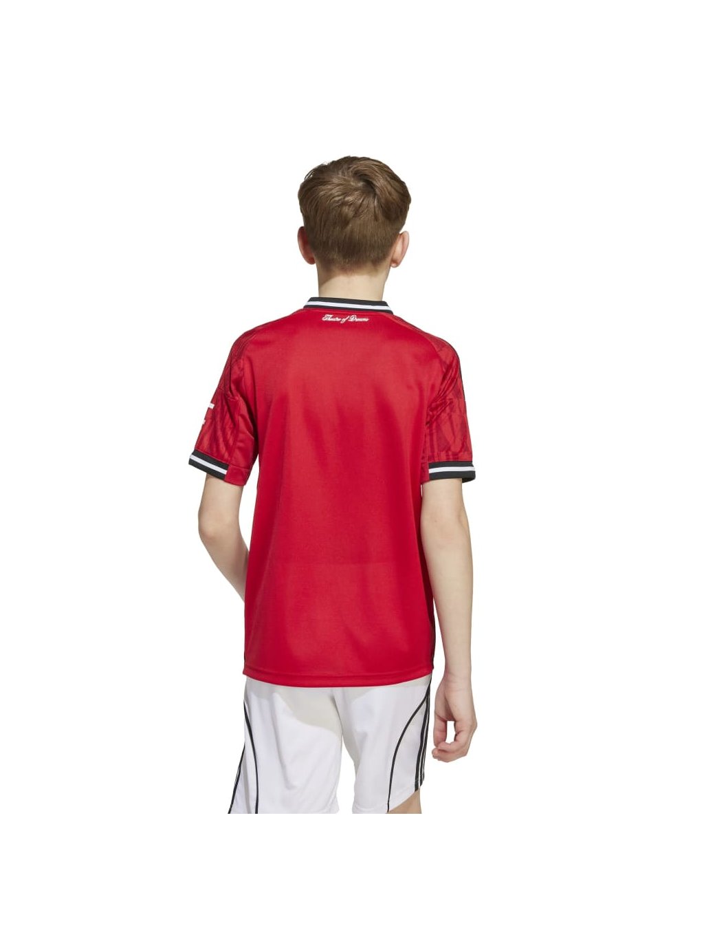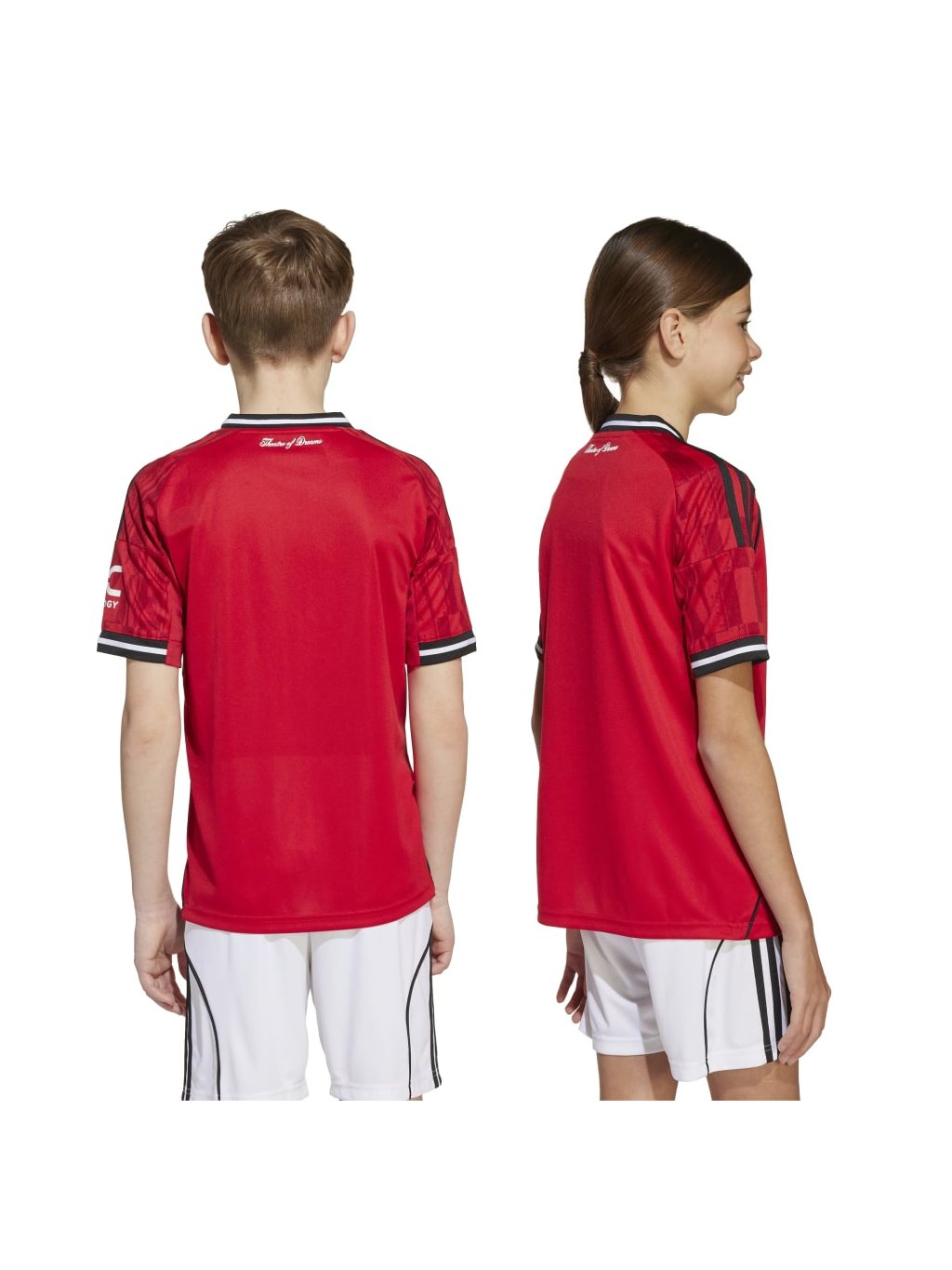 Jen málo sportovních stadionů se vyrovná dramatu, které během let zažilo ikonické domácí hřiště Manchesteru United. Právě tomuto stadionu vzdává hold tato juniorská verze dresu adidas, ve kterém se zde bude hrát sezóna 25/26, a to nápisem „Theatre of Dreams“ a abstraktní grafikou inspirovanou Old Traffordem na rukávech. Design zaměřený na pohodlí fotbalových fanoušků má savý materiál AEROREADY a tkaný klubový znak.
