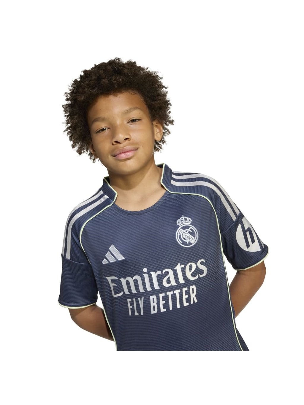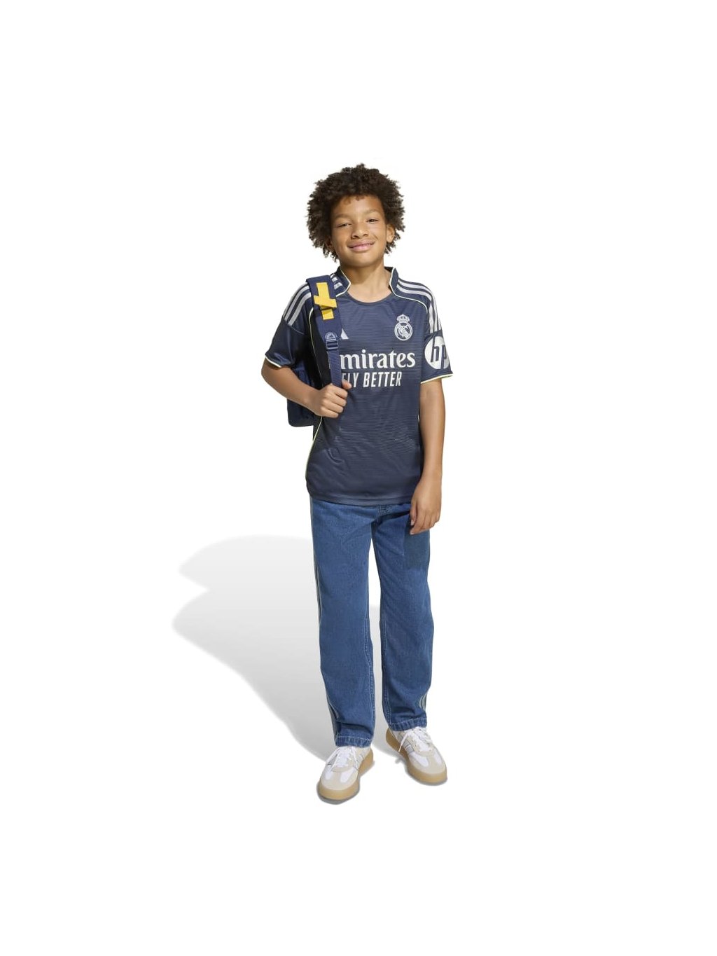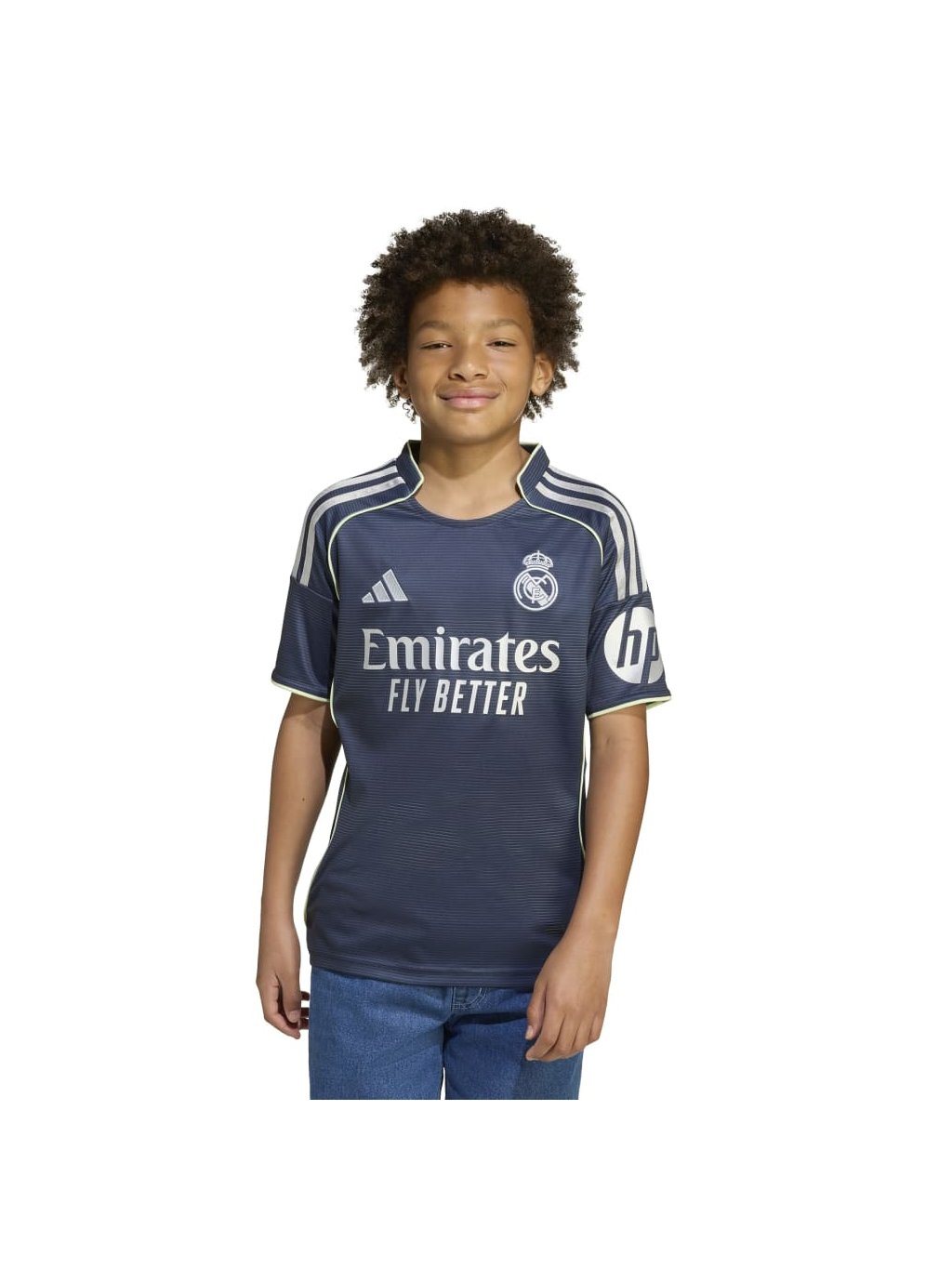 Světově proslulý stadion Realu Madrid vstupuje do zcela nové éry a tento venkovní fotbalový dres adidas pro juniory vzdává hold magickým nocím právě na Santiago Bernabéu. Potisk s moaré efektem a stříbrné metalické detaily napodobují lesknoucí se fasádu zrekonstruovaného stadionu. Technologie AEROREADY regulující vlhkost zajistí, že i na cestách se svým týmem se budou malí fanoušci cítit jako v pohodlí domova.