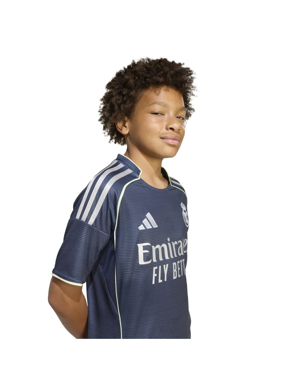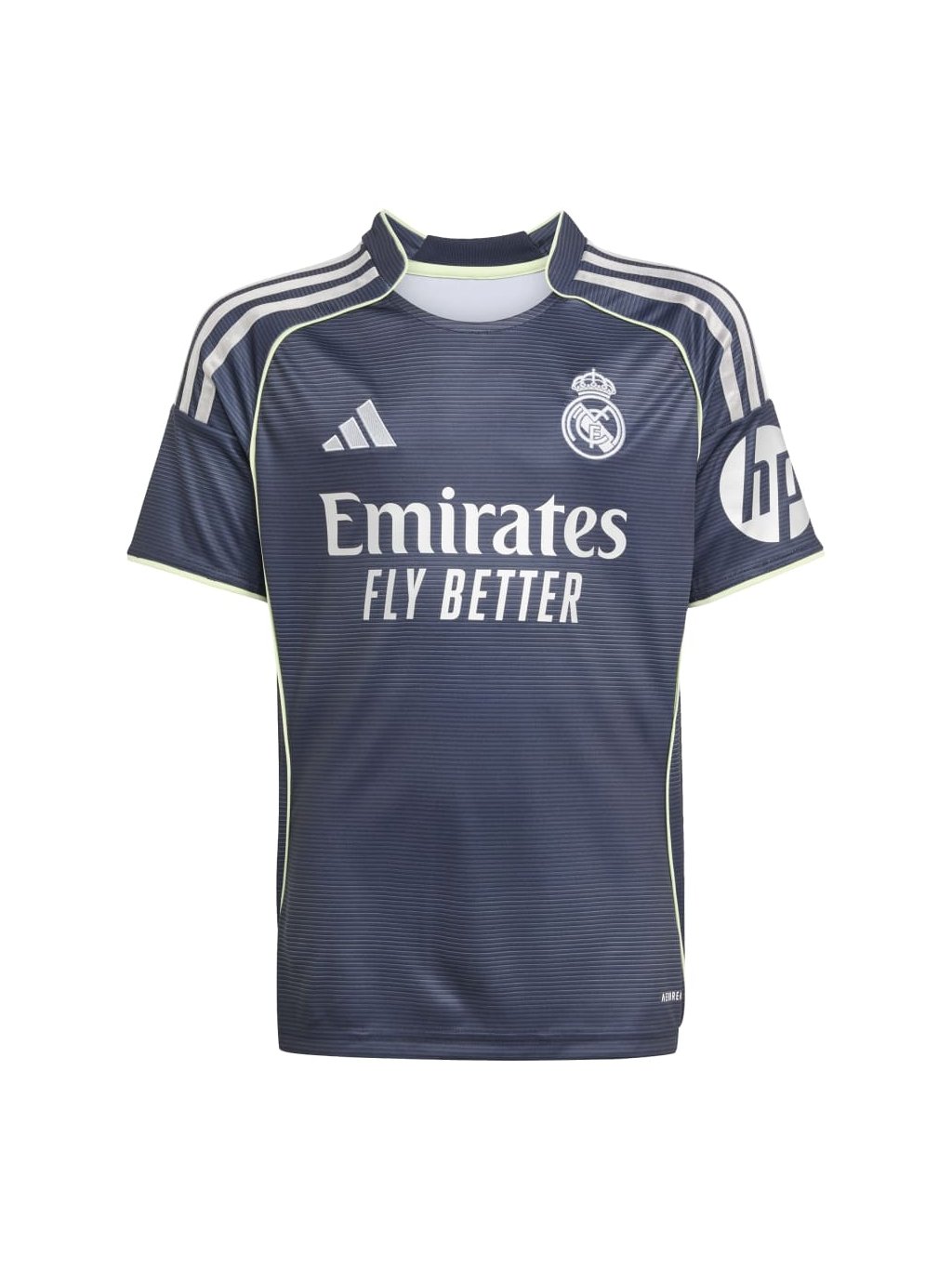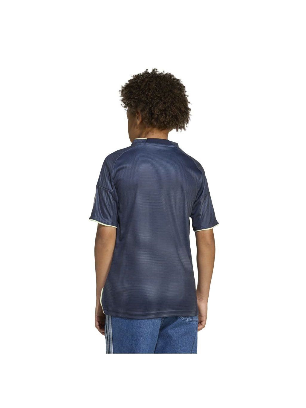 Světově proslulý stadion Realu Madrid vstupuje do zcela nové éry a tento venkovní fotbalový dres adidas pro juniory vzdává hold magickým nocím právě na Santiago Bernabéu. Potisk s moaré efektem a stříbrné metalické detaily napodobují lesknoucí se fasádu zrekonstruovaného stadionu. Technologie AEROREADY regulující vlhkost zajistí, že i na cestách se svým týmem se budou malí fanoušci cítit jako v pohodlí domova.