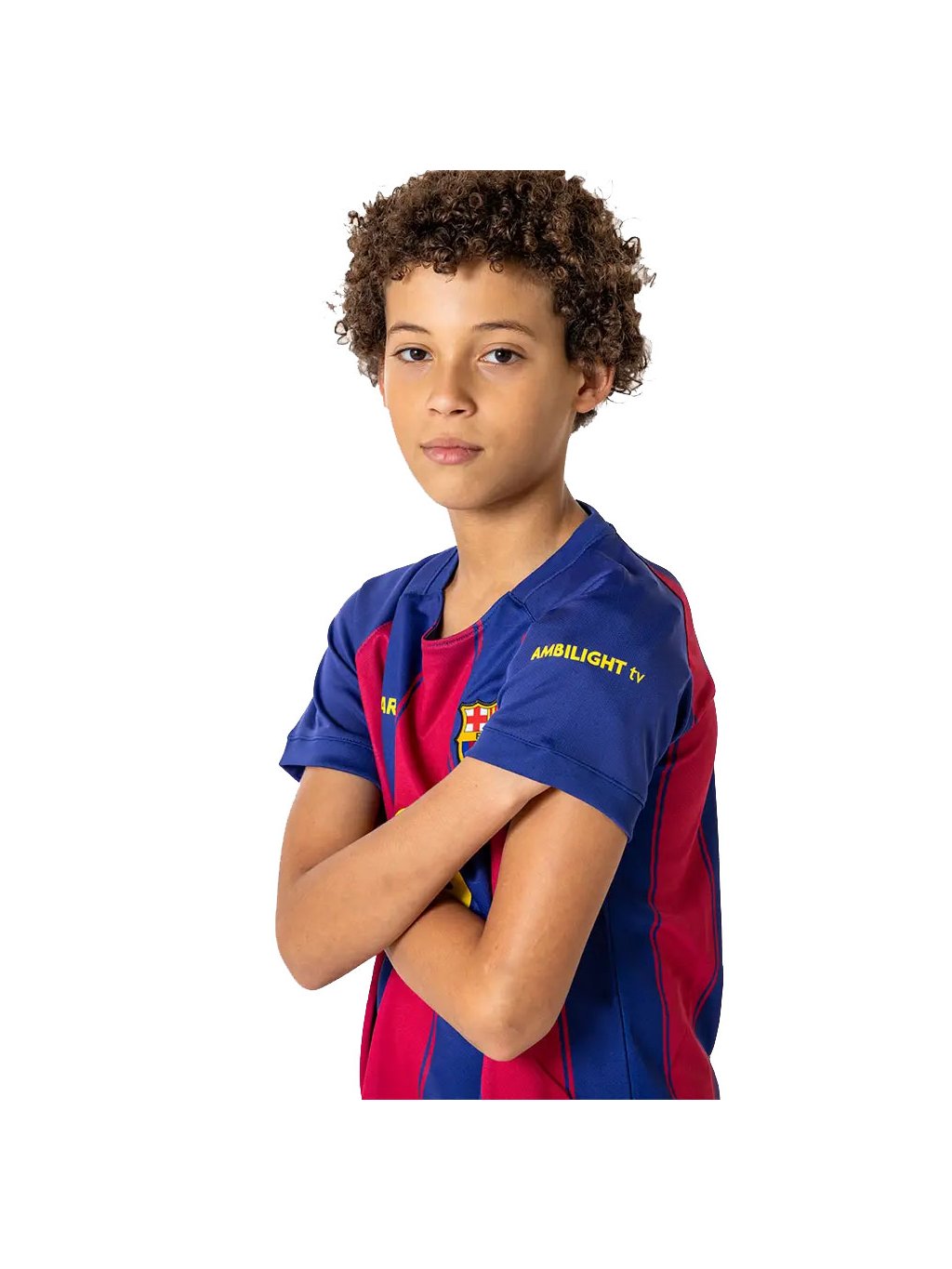 Oficiální replika dresu a trenek v barvách současného domácího dresu FC Barcelona. Tričko je vyrobeno ze 100% polyesteru, takže je ideální pro dobrou fotbalovou hru nebo pro nošení ve volném čase. Tenká tkanina je neuvěřitelně pohodlná, dobře dýchá a snadno se čistí.