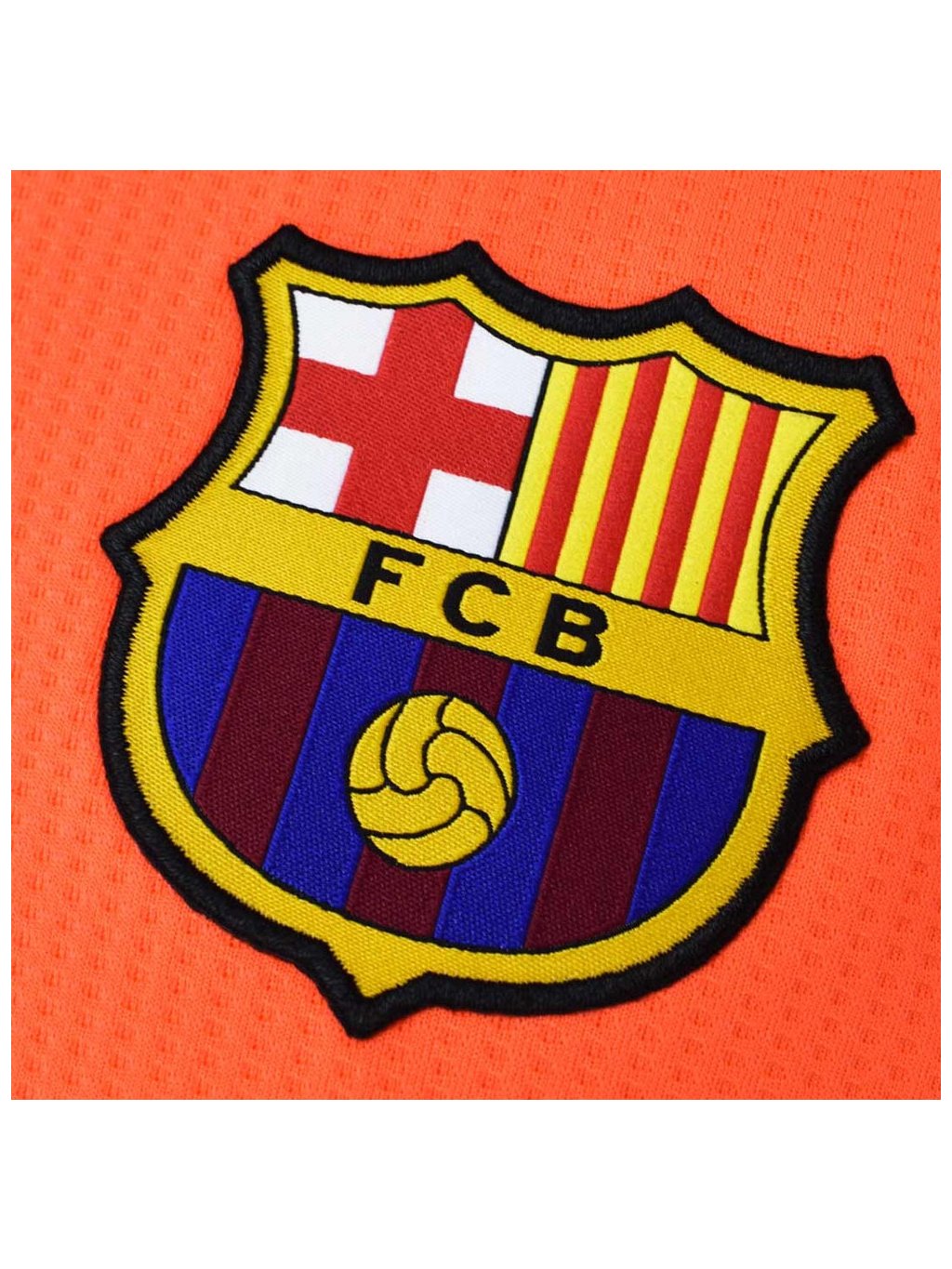 - Klubový znak FCB na hrudi, viditelní sponzoři
