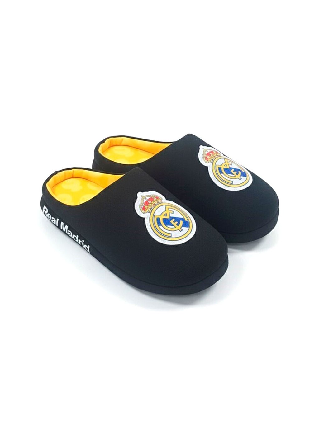 Stylové domácí pantofle Real Madrid v černém provedení se žlutou podšívkou jsou ideální pro pohodlí po náročném dni. Díky měkké stélce a lehkému materiálu si je rychle oblíbíš pro každodenní nošení doma.