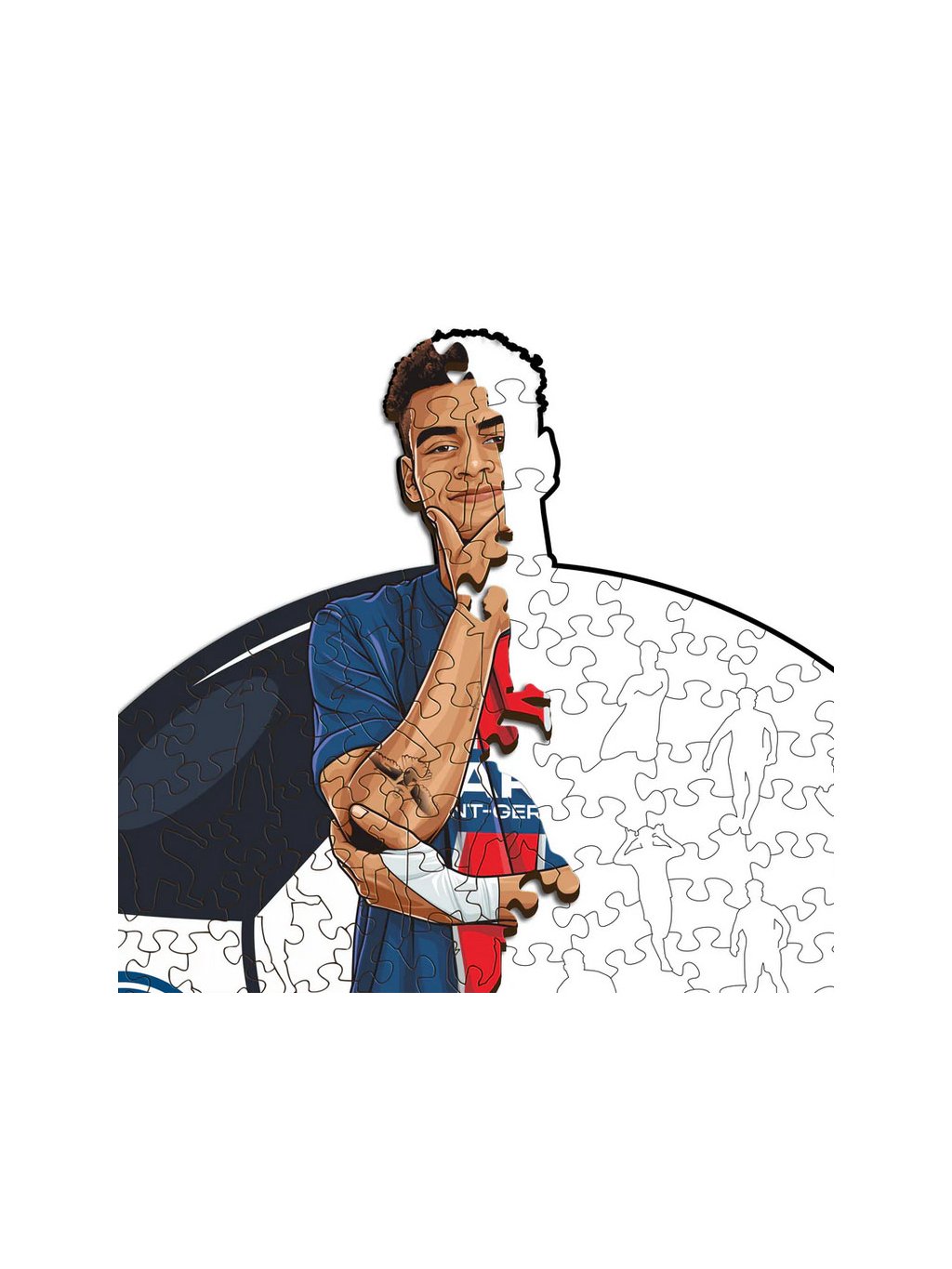 Toto jedinečné dřevěné puzzle s motivem mladé hvězdy Désirého Douého zachycuje jednoho z největších talentů Ligue 1 v akci. Každý dílek má originální tvar a některé znázorňují prvky spojené s jeho dynamickým stylem hry – míče, dresy či fotbalové symboly Francie. Skvělý způsob, jak spojit zábavu a vášeň pro fotbal, ideální pro děti, dospělé i sběratele sportovních suvenýrů.