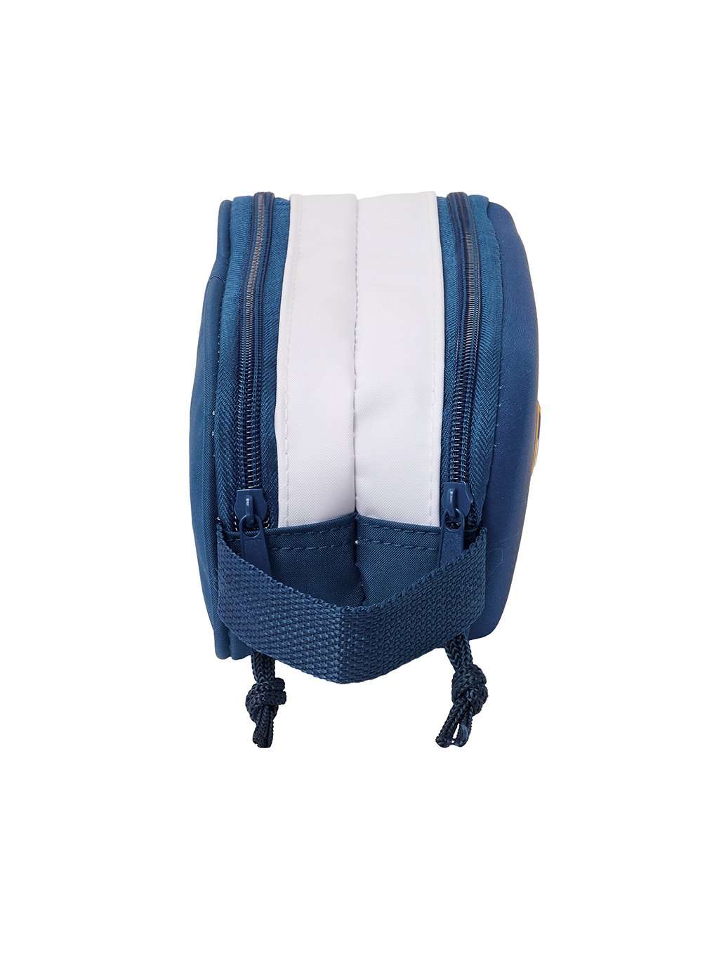 Penál Real Madrid je vhodný pro předškoláky a malé fanoušky fotbalu. Disponuje dvěma oddělenými přihrádkami na zip a bočním madlem pro snadné přenášení. Penál má kompaktní rozměry 210 × 60 × 80 mm.