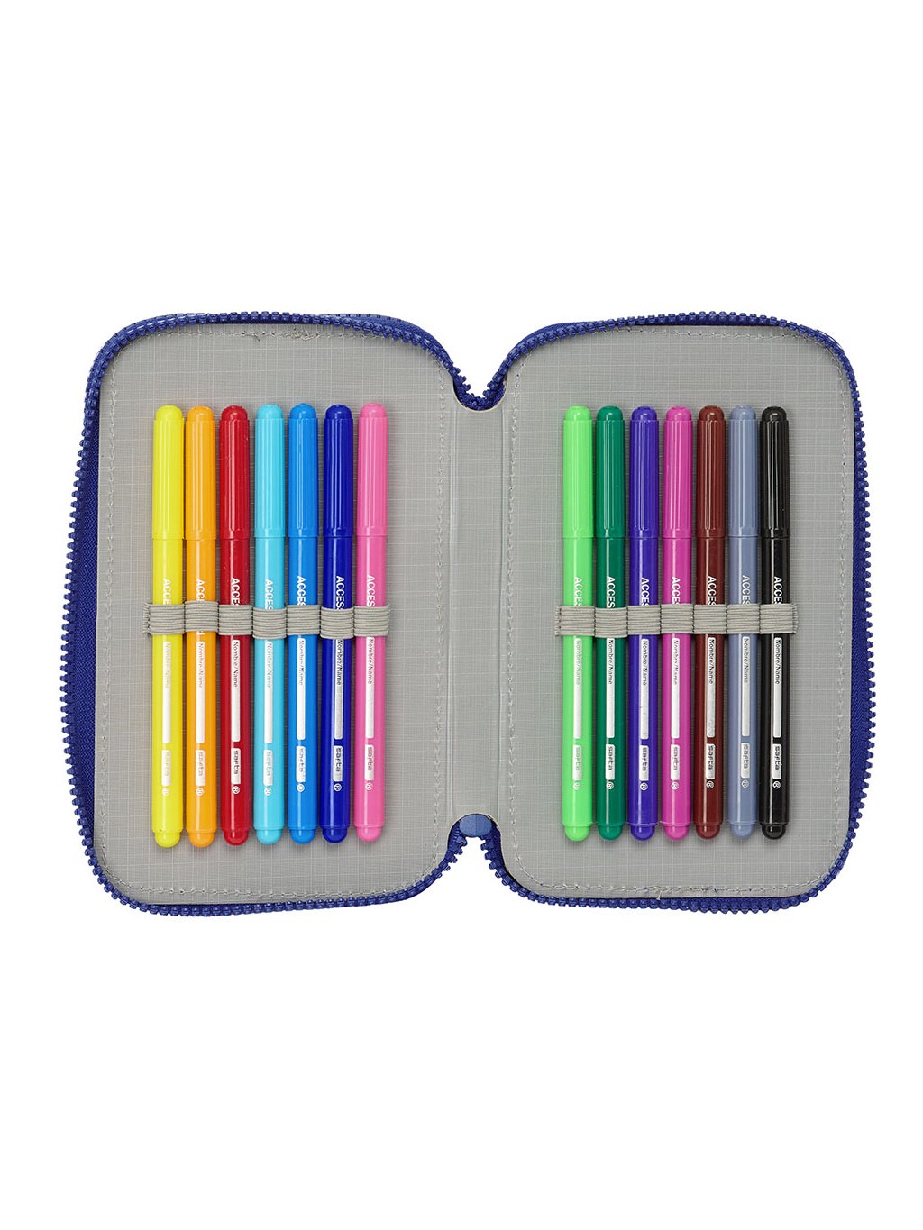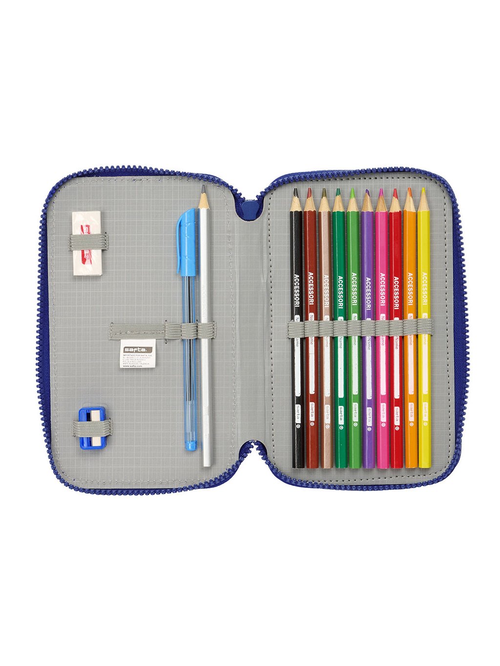 Dvoupatrový penál FC Barcelona obsahuje 28 kusů školních pomůcek, ideálních pro každodenní použití ve škole. S rozměry 125 × 40 × 195 mm nabízí praktické uspořádání v designu slavného klubu FC Barcelona, který potěší každého mladého fanouška.