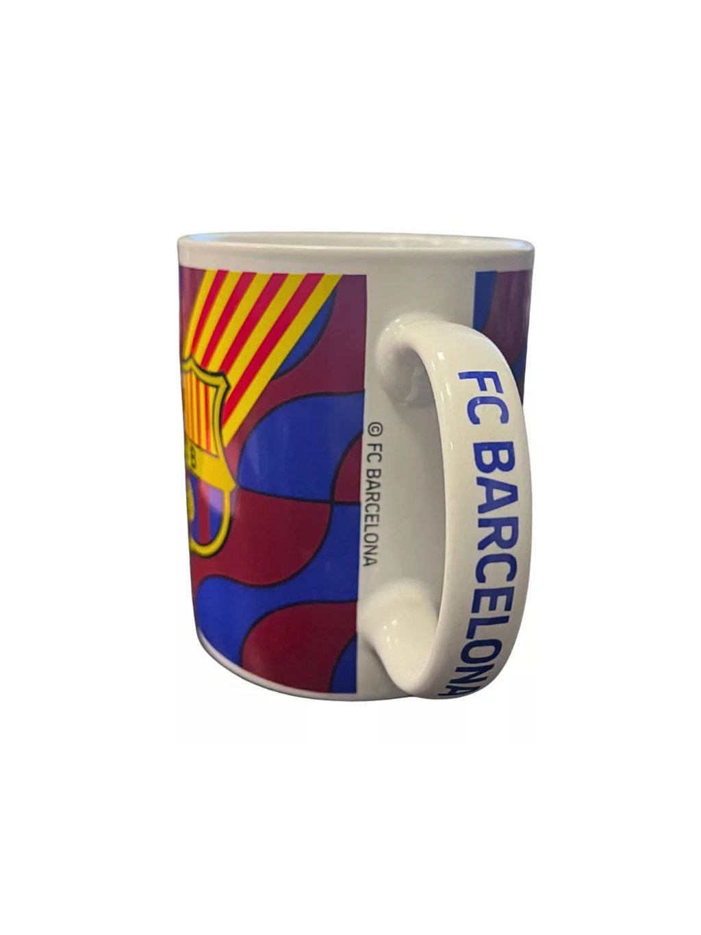 Na uchu hrnku je umístěn nápis „FC Barcelona“, který podtrhuje oficiální a reprezentativní vzhled produktu.