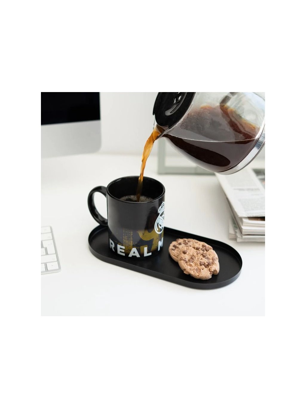 Stylový proměňovací hrnek Real Madrid je perfektním dárkem pro všechny fanoušky „Bílého baletu“. Na první pohled působí elegantně v černé barvě, ale po nalití horkého nápoje se na jeho povrchu objeví logo klubu a rok založení, čímž vytvoří jedinečný vizuální efekt.