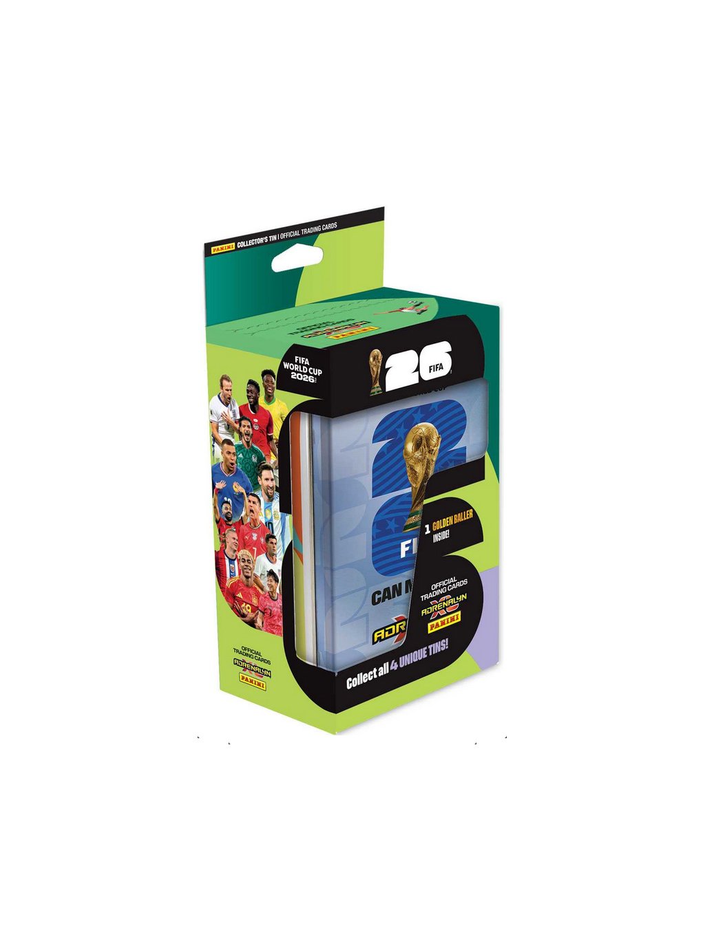 V plechové krabičce FIFA WORLD CUP je 64 karet + 3 limitované karty + 1 karta GOLDEN BALLER.