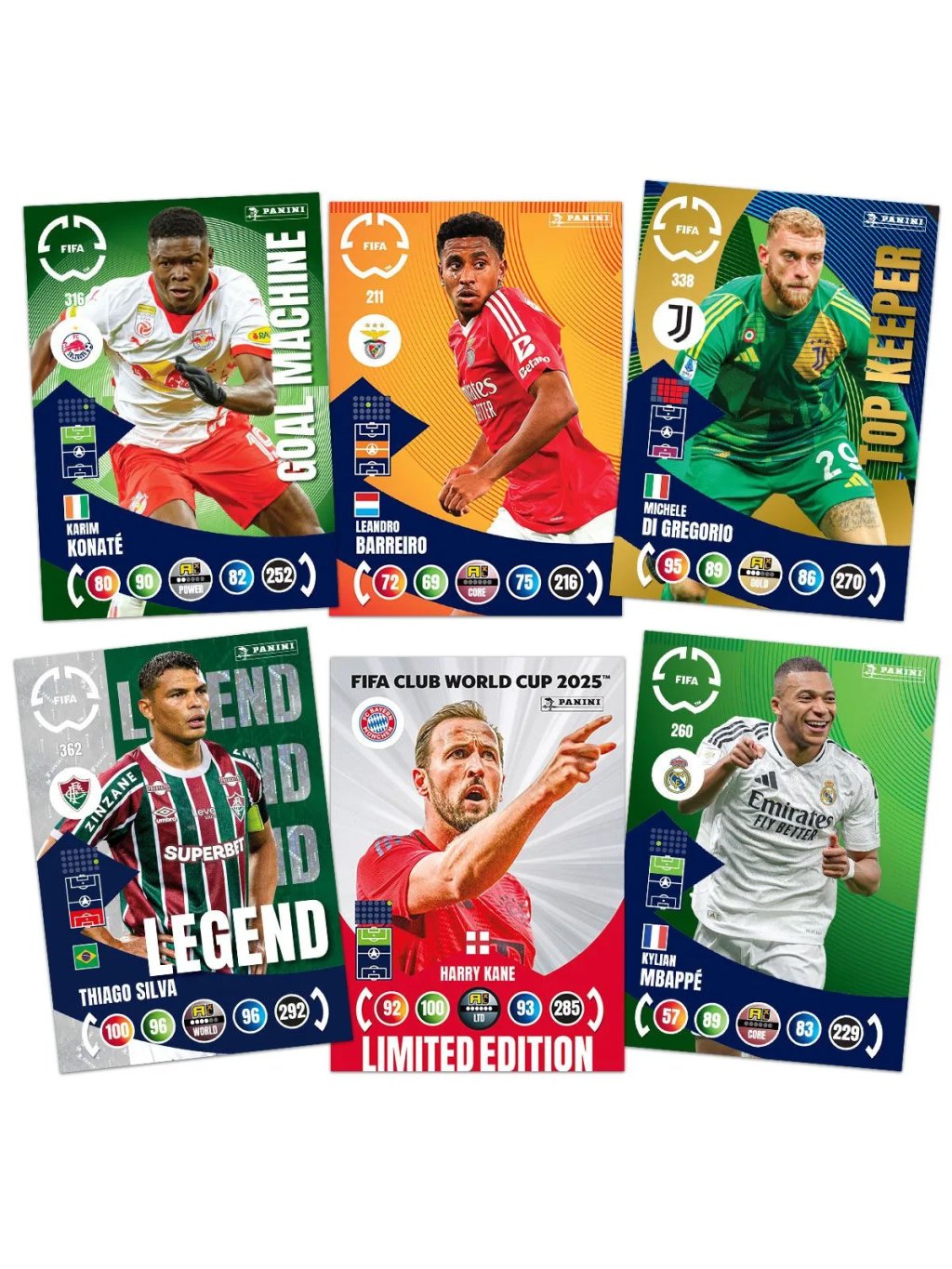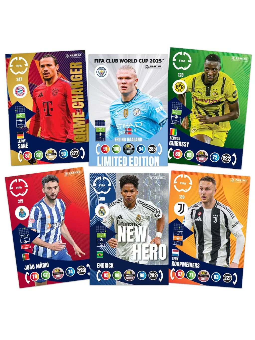 Zažijte Mistrovství světa klubů FIFA 2025 s Panini a sbírejte oficiální sběratelské karty pro největší fotbalovou událost tohoto léta. Všech 32 kvalifikovaných týmů, 369 karet (210 základních karet, 159 speciálních karet). Kromě nových karet New Heroes objevte oblíbené klasiky Adrenalyn XL, jako jsou Titáni, Kouzelníci, Gólové stroje a Ti, co změnili hru, a hledejte vzácné karty Golden Baller s těmi nejlepšími z nejlepších!