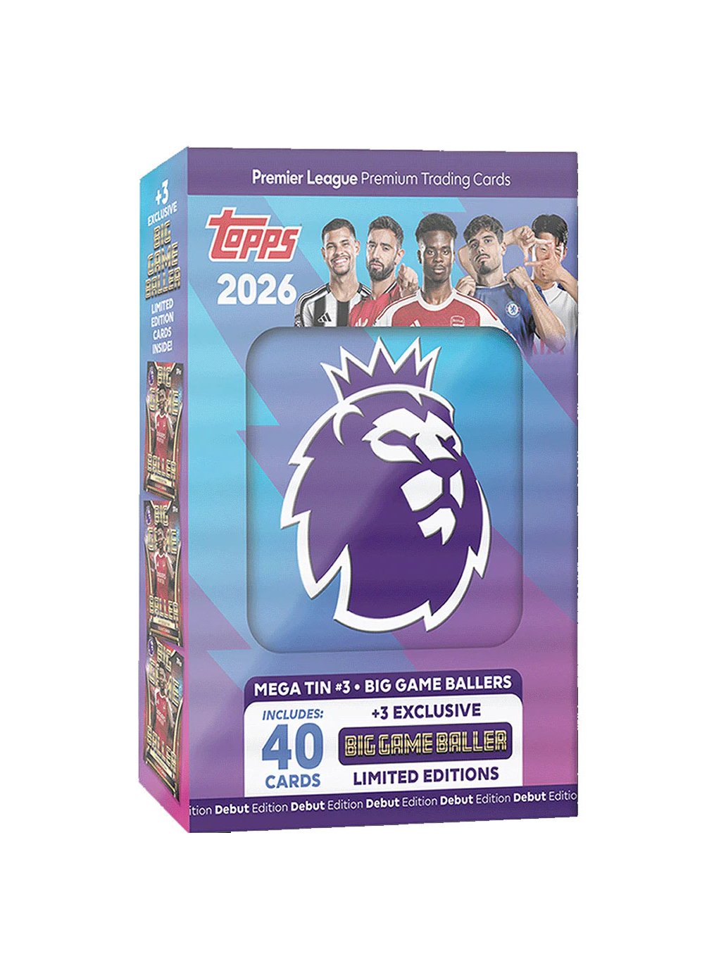 Topps Premier League 2026 – Debut Edition přináší fanouškům fotbalu úplně novou úroveň sběratelského zážitku! Kolekce je nabitá hity – od autogramových karet současných hvězd i legend, přes číslované Parallels, Diamond Rookie Cards, Chrome King Legends, mega-vzácné Premier Pull Limited Edition až po ikonické Gold Lion Cards. Všechny týmy Premier League jsou zastoupeny v široké škále podsetů, jako jsou Generation Now, Full Force, Throwback Threads, Tekkers, Beast Mode či Pro Precision. Najdi podpisy hvězd jako Haaland, Rooney, Bale, Son, Palmer, Torres, Van Dijk a mnoha dalších a vybuduj si sbírku, která nemá obdoby!