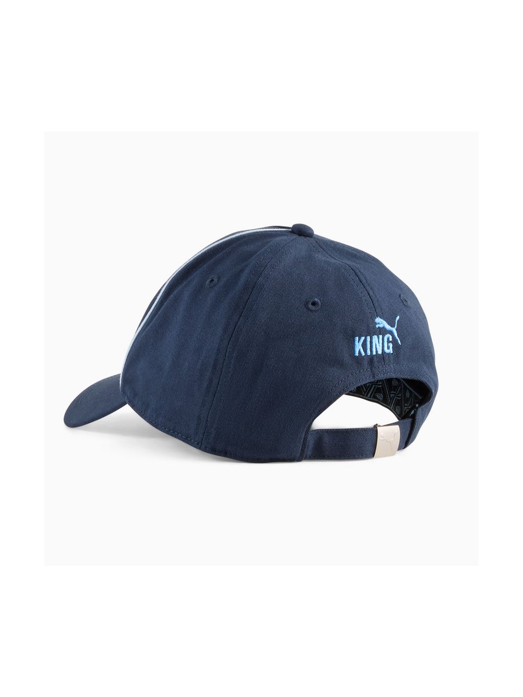 Stylová kšiltovka Manchester City KING,která podtrhne tvou věrnost Citizens. Má klasický baseballový střih s nízkým zahnutým kšiltem, vysokou korunou a pevně tvarovaným předním panelem. Díky nastavitelnému kovovému klipu si ji snadno přizpůsobíš na míru. Na přední straně je vyšívaný klubový znak Manchester City, vzadu pak ikonické logo PUMA King. Vyrobena ze 100% bavlny pro maximální pohodlí i odolnost – ideální na stadion, do města i pro volný čas.