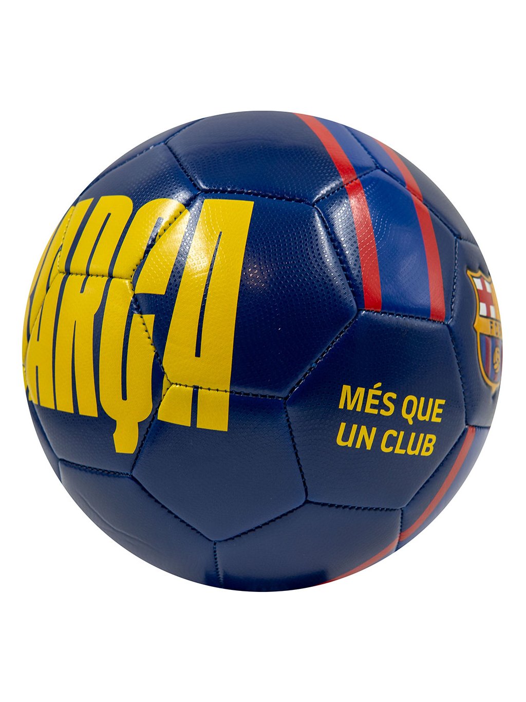 Stylový fotbalový míč FC Barcelona v ikonických barvách Blaugrana zaujme na první pohled výrazným žlutým nápisem BARÇA, klubovým znakem a heslem „Més Que Un Club“. Moderní design s červenými pruhy na tmavě modrém podkladu podtrhuje jedinečnou identitu katalánského klubu.