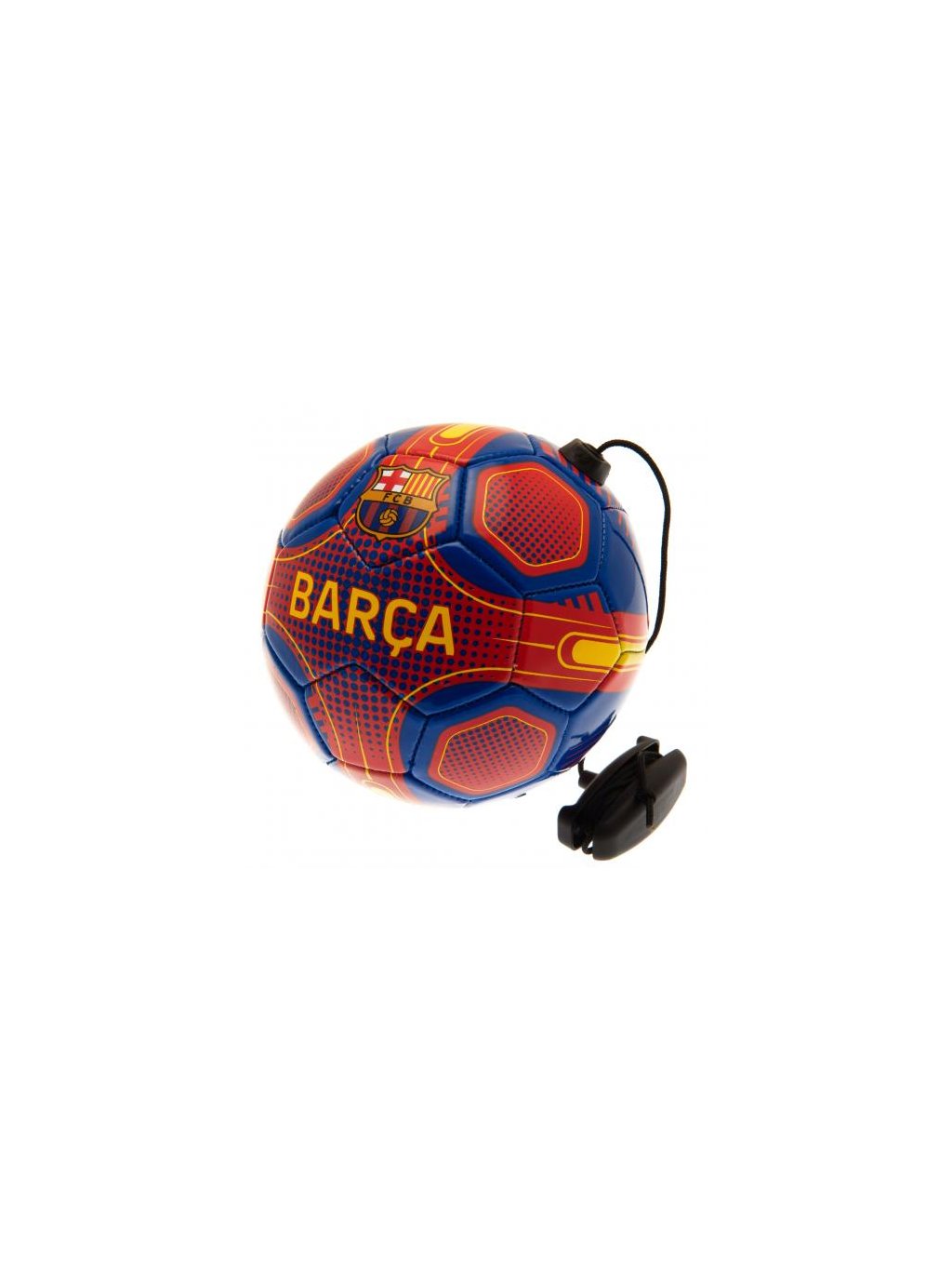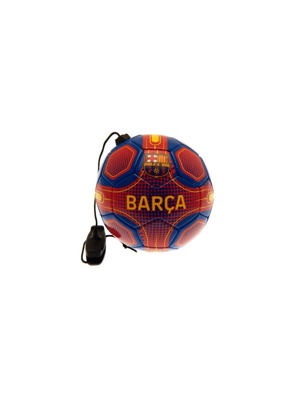 Červenomodrý fotbalový míč s barevným znakem Barcelony, skvělá pomůcka pro trénink dovedností a ovládání zblízka. Ideální pro zlepšení přihrávek, kontroly a reakcí.