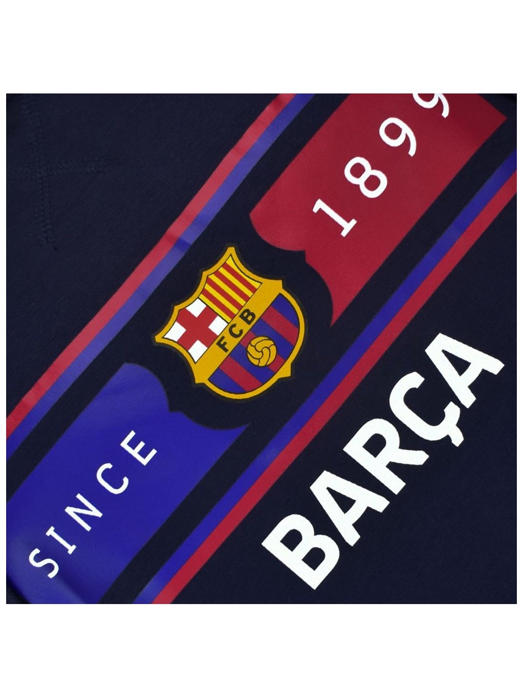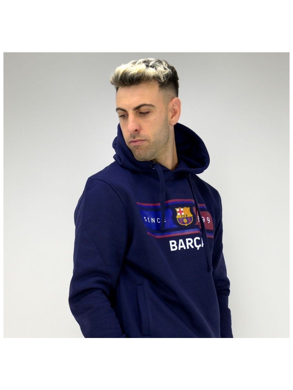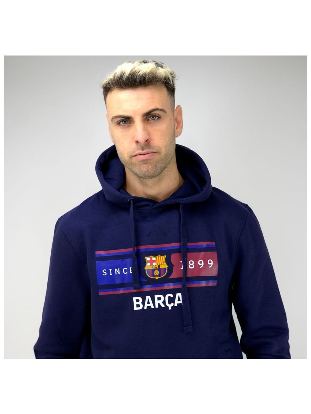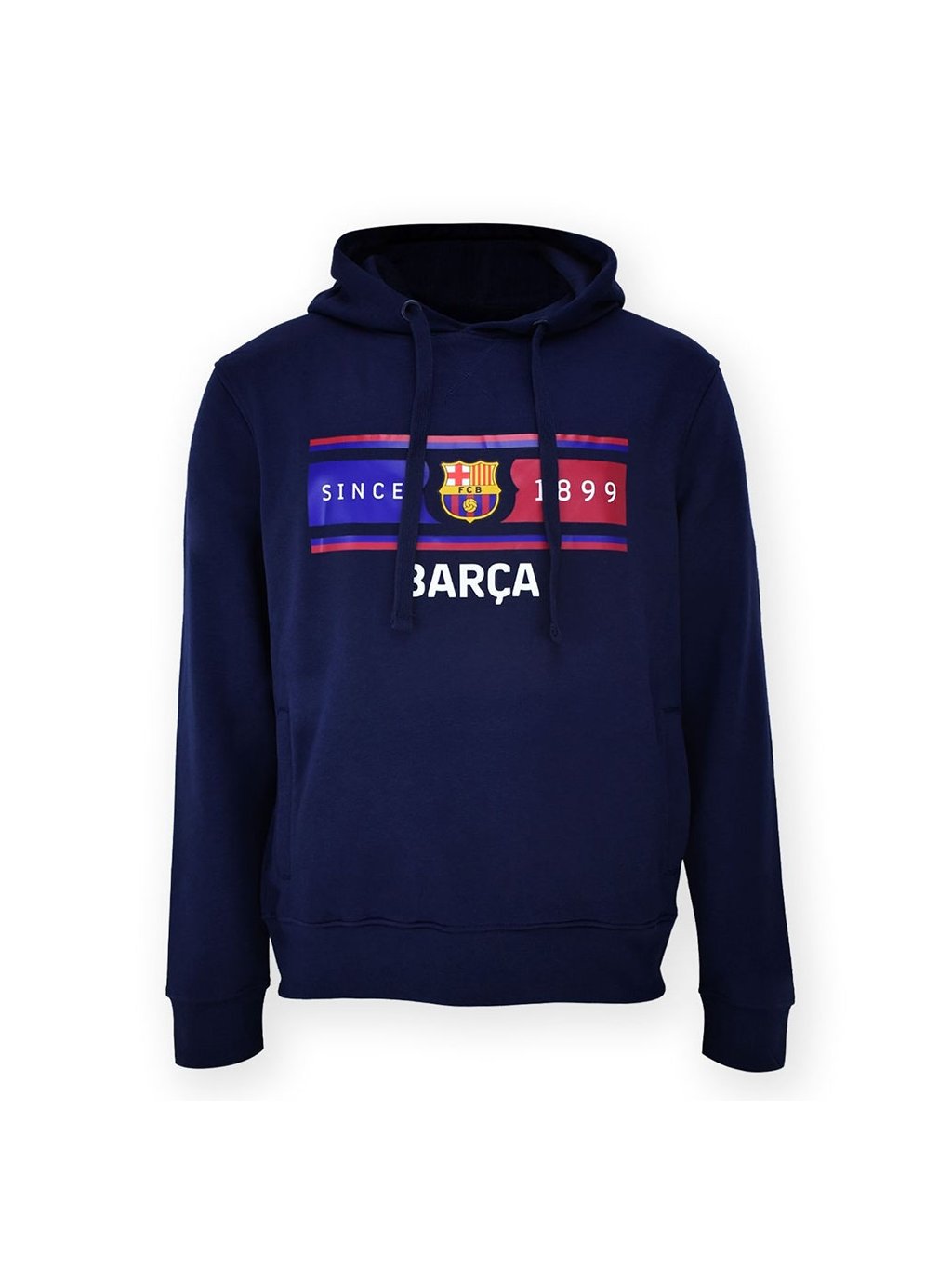 Mikina FC Barcelona s kapucí je ideální volbou pro všechny fanoušky, kteří chtějí spojit styl a pohodlí. Je vyrobena z kvalitní směsi bavlny a polyesteru (65/35), díky čemuž je příjemná na dotek, odolná a dobře se nosí. Přední stranu zdobí nápis Since 1899 v klubových barvách a logo Barça v bílé barvě. Mikina má nastavitelnou kapuci se šňůrkou, pružné manžety a spodní lem a nechybí ani dva praktické boční kapsy. Skvělá volba pro každodenní nošení i volný čas.