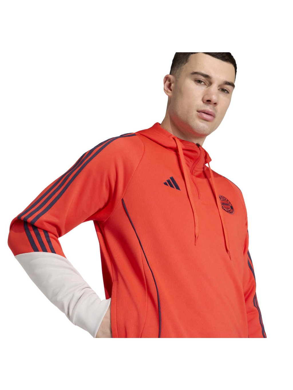 Když přijde na fotbal, mikina FC Bayern 25/26 Sweat Hoodie je moderní klasikou, a to jak na hřišti, tak i mimo něj. Tato mikina je inspirovaná novým sportovním dresem adidas a vznikla s ohledem na výkon. Vyšívané logo se 3 proužky je odkazem na fotbalové dědictví a francouzské froté nabízí měkký a útulný pocit. Volný střih zajišťuje flexibilitu a stahovací šňůrka umožňuje nastavitelnost.