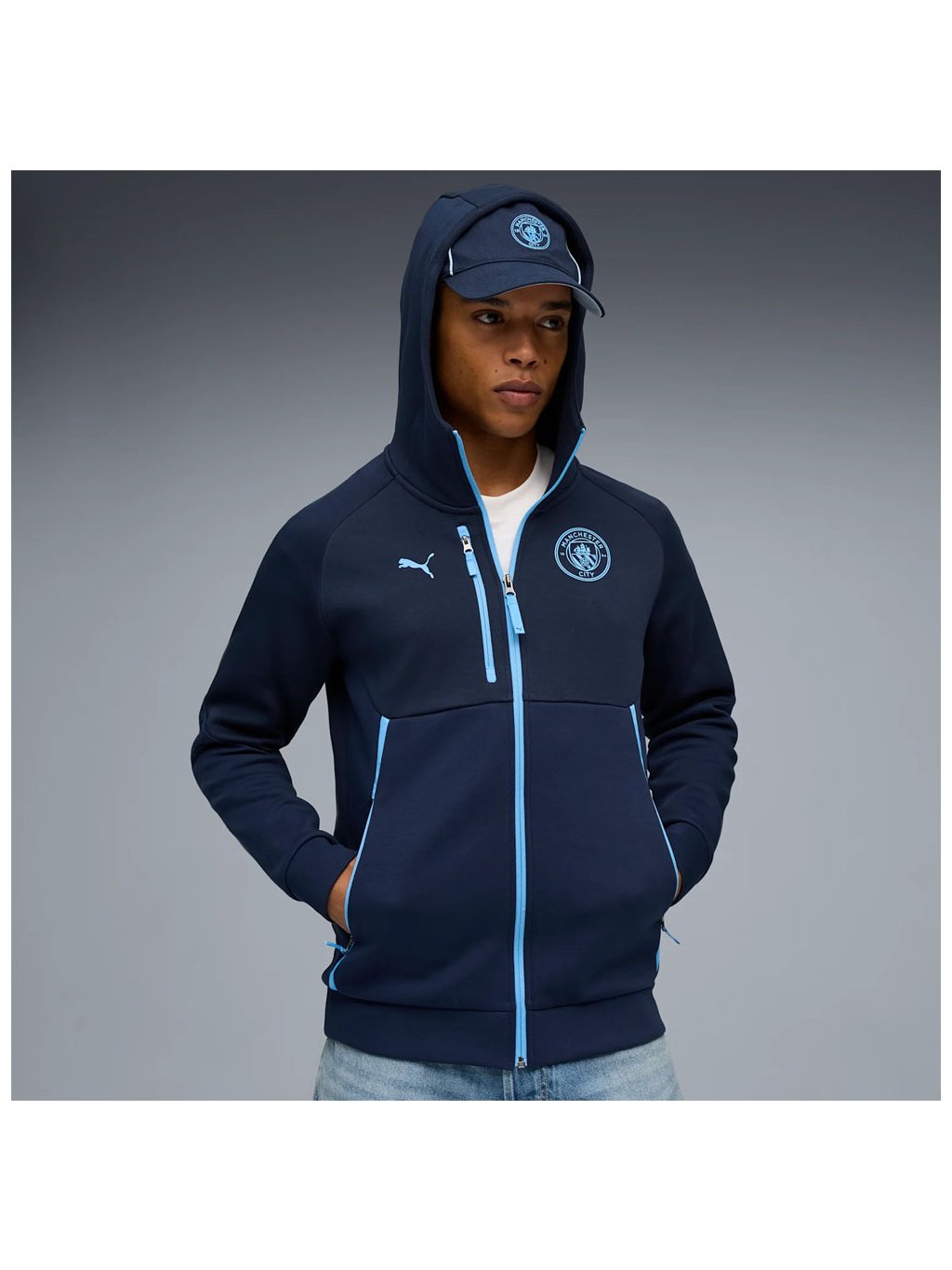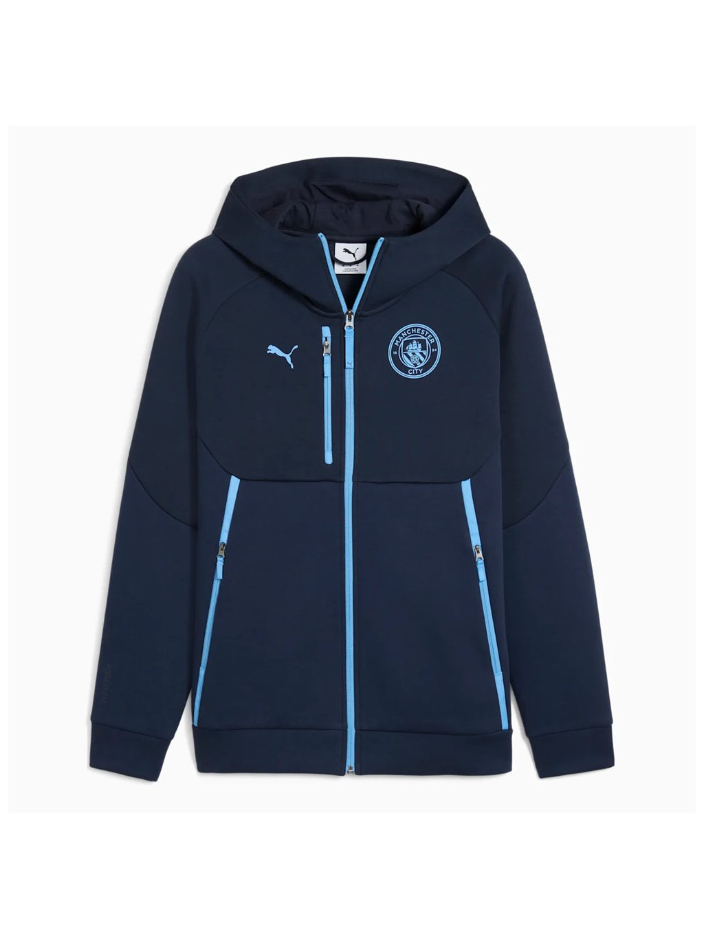 Moderní mikina Manchester City Full-Zip z kolekce PUMATECH, která propojuje špičkovou technologii s tradicí klubu. Díky inovativním materiálům a chytrému designu nabízí maximální pohodlí, styl i výkon – ať už při tréninku, nebo fandění na stadionu. Mikina má regular střih, kapuci s podšívkou, celopropínací zip, klokankovou kapsu a výrazné klubové i PUMA detaily. Materiál: svrchní část 77 % bavlna / 23 % polyester, podšívka kapuce a kapsa 100 % bavlna.