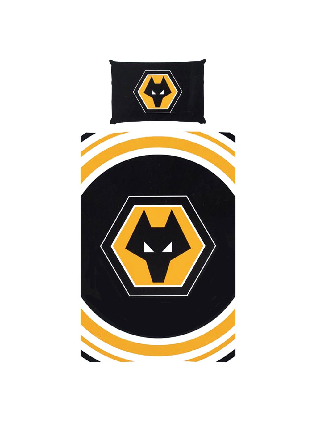 Stylové povlečení pro všechny fanoušky Wolves! Tento set s výrazným „pulse“ designem zdobí velký klubový znak Wolverhampton Wanderers uprostřed. Polštář je doplněn rovněž výrazným logem klubu a zadní strana přikrývky nabízí vícečetný motiv znaků. Povlečení je oboustranné, příjemné na dotek a snadno se udržuje.