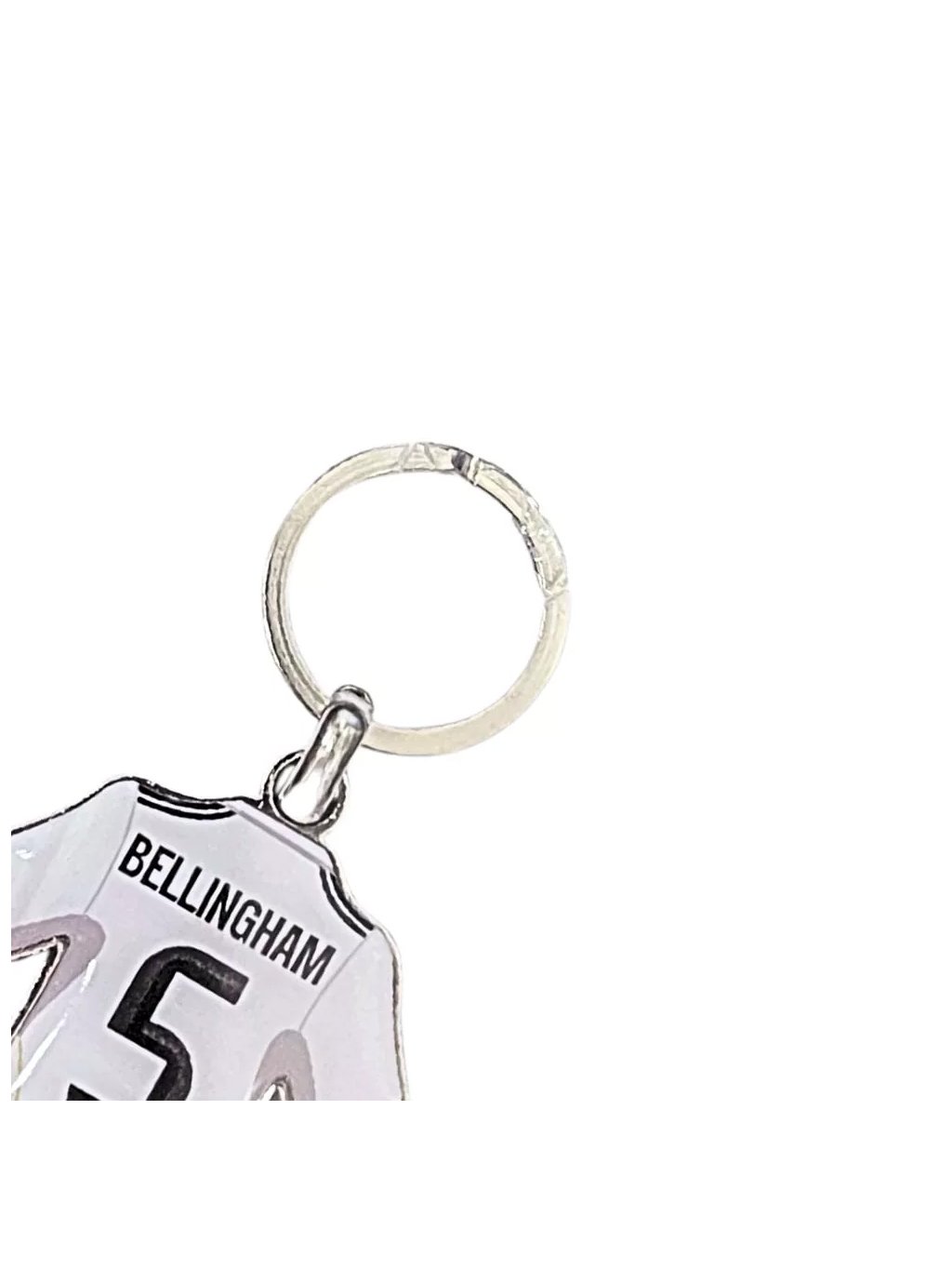 Přívěsek ve tvaru dresu je ideální volbou pro fanoušky Real Madrid a hvězdy týmu Jude Bellingham. Elegantní a čistý design v kombinaci s odolným kovovým provedením z něj dělá praktický doplněk pro každodenní použití – na klíče i na batoh či tašku.