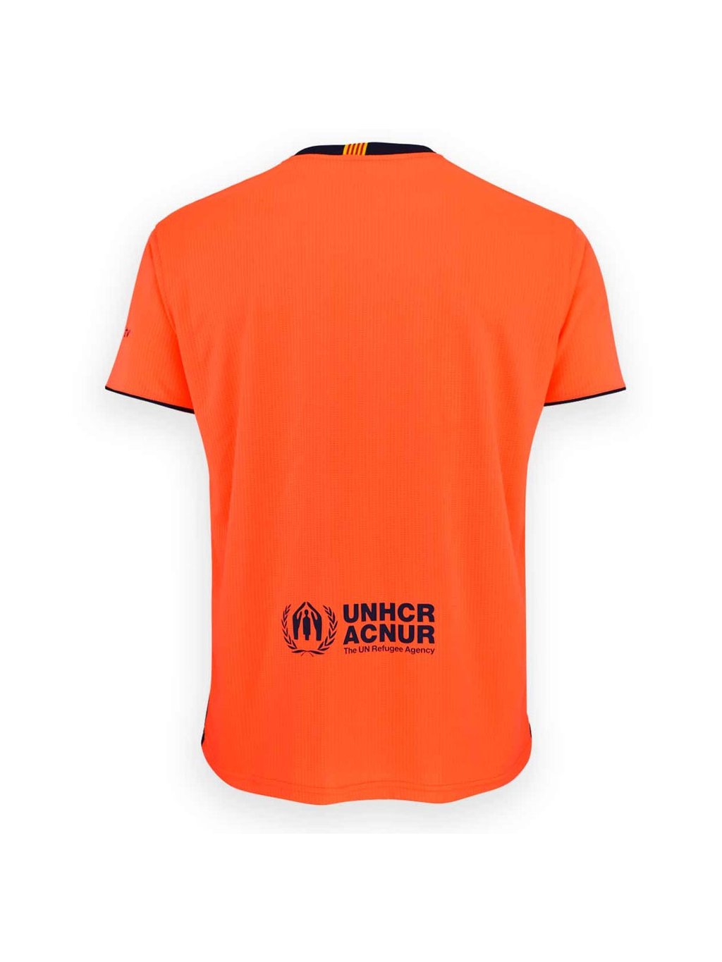 Oficiální replika třetí sady dresů FC Barcelona pro sezónu 2025/26 zaujme výrazným lososově fluorescenčním provedením, které přináší moderní a odvážný vzhled. Tento dres je určen fanouškům, kteří chtějí nosit barvy Barçy jinak, ale stále s respektem ke klubové identitě. Stylové kontrastní detaily a kvalitní zpracování z něj dělají ideální kousek na zápasy, běžné nošení i do sbírky.