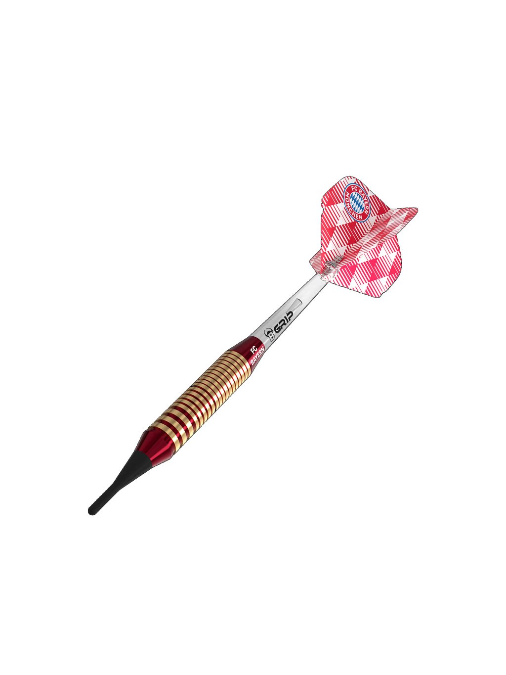 Klasicky tvarovaný mosazný barrel je vybaven rovnoměrnou ring grip strukturou pro jistý a kontrolovaný úchop při hodu. Decentní branding FC Bayern München dodává šipkám sportovní identitu a atraktivní vzhled.