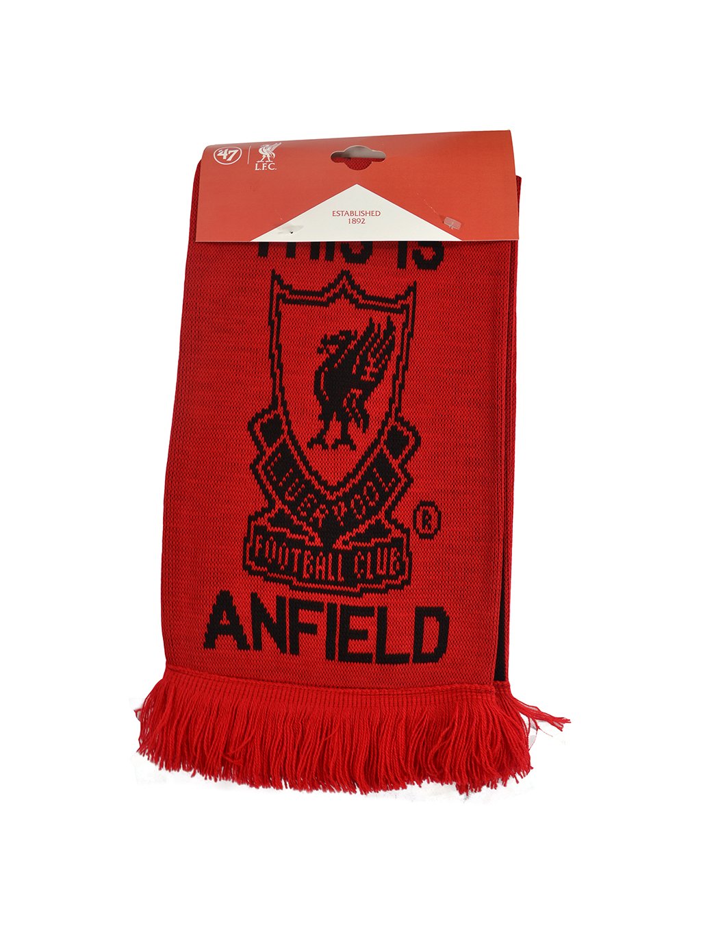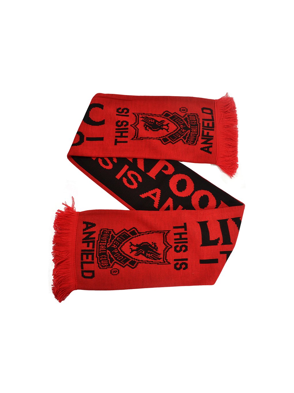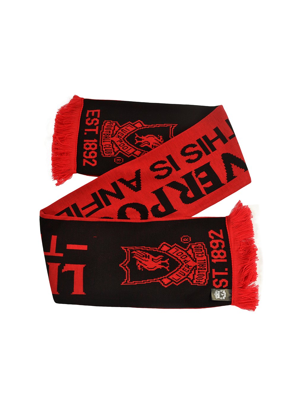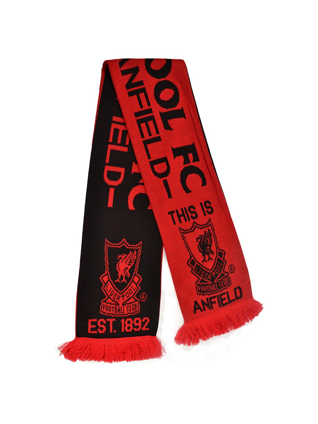 Pletená šála Liverpool FC v červeno-černém provedení s nápisem This Is Anfield a klubovým znakem na obou koncích. Perfektní volba pro každého fanouška Reds.