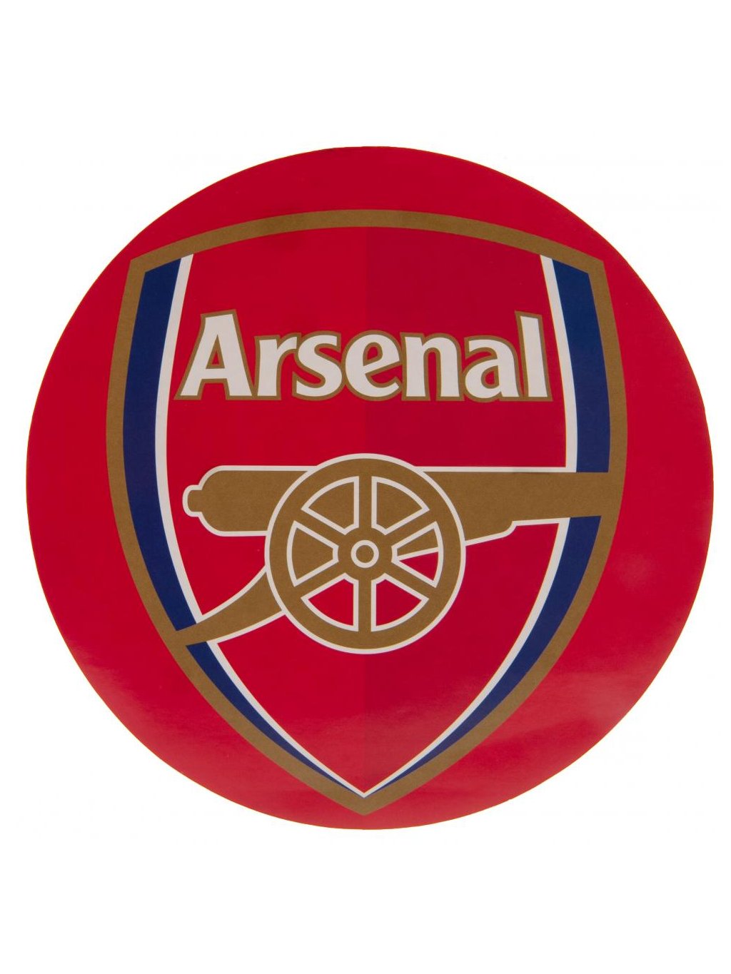 Červená kruhová samolepka s barevným znakem Arsenal FC.