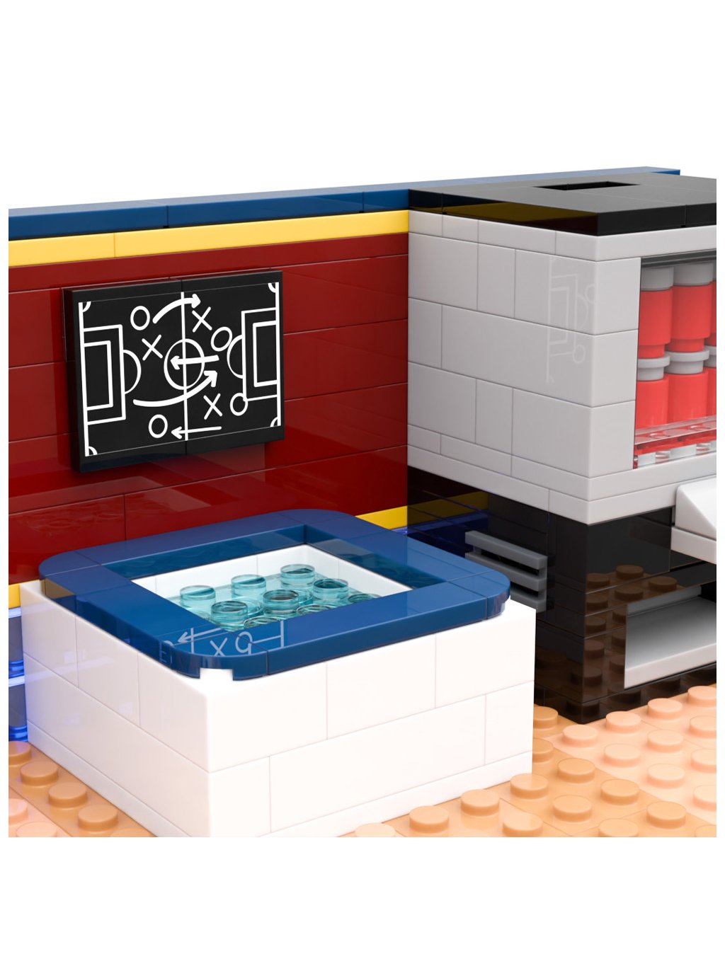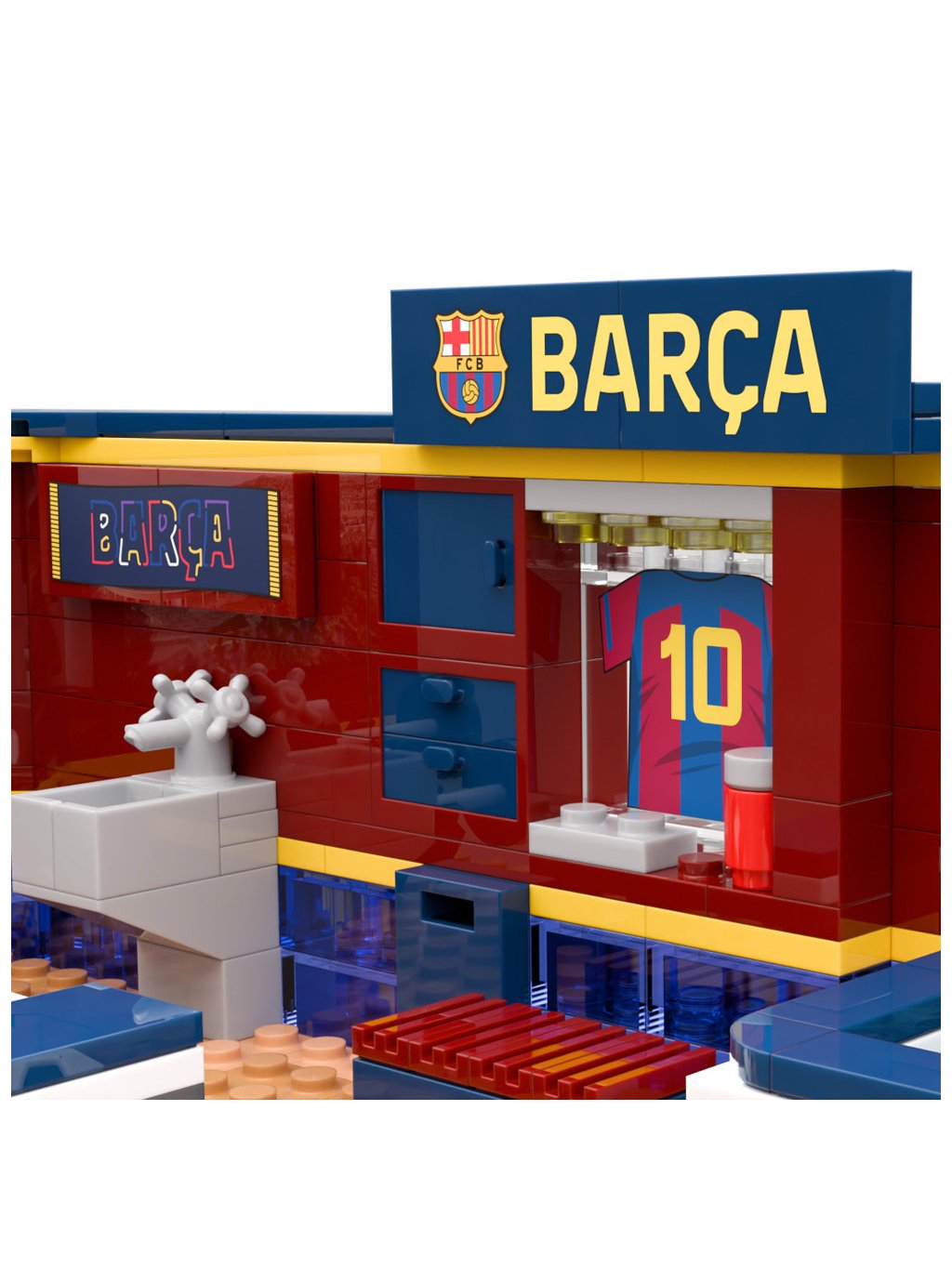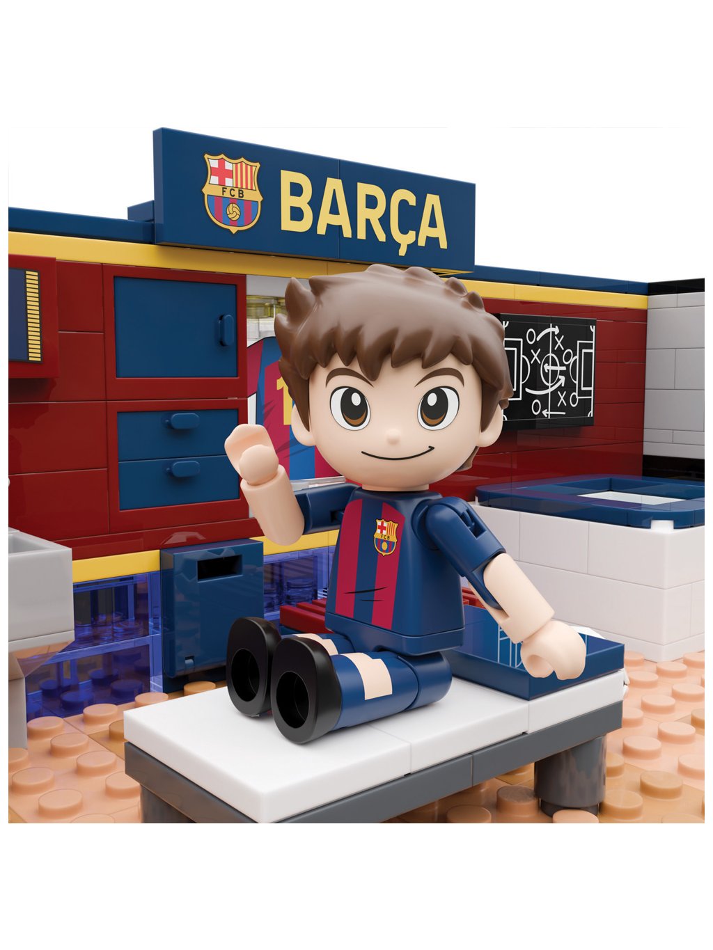 Stavebnice FC Barcelona – šatna přináší atmosféru zápasového dne do světa kreativní hry. Model inspirovaný šatnou Barçy zobrazuje jedno z nejikoničtějších míst klubu, kde se soustředění, taktika a týmový duch spojují před každým utkáním. Každý detail podporuje fantazii, vyprávění vlastních příběhů a silnější propojení s klubem.