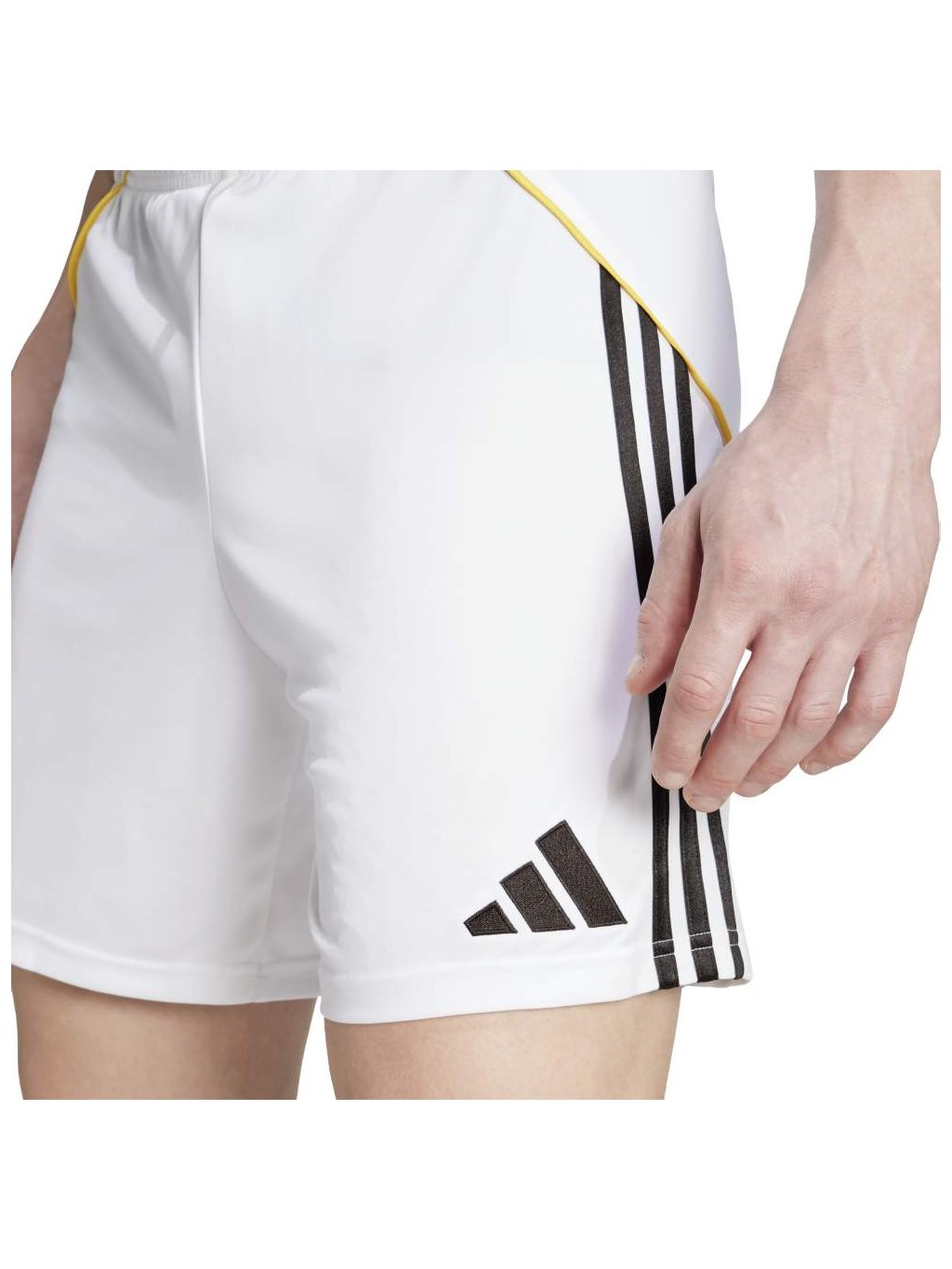 Postaveny na pevných základech. Tyto fotbalové šortky adidas, které jsou součástí domácí soupravy Real Madrid a značí poslední Bernabéuovu renovaci, křičí tvoji podporu do světa pomocí vyšívaného týmového znaku nad lemem. Technologie AEROREADY na pozadí reguluje vlhkost, aby tě udržela v suchu, ať už jsi na hřišti, nebo fandíš na tribuně.