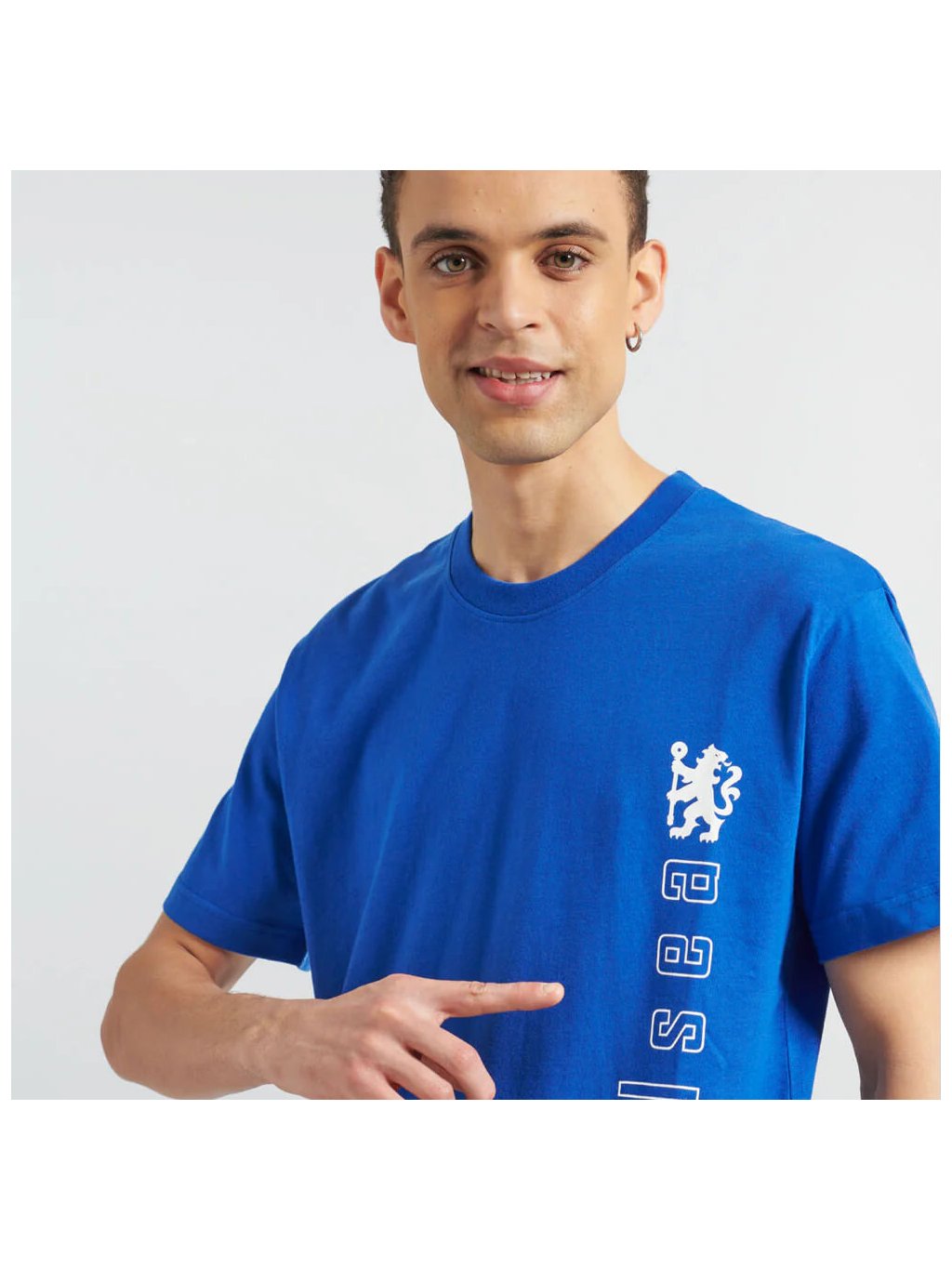 Tričko Chelsea FC v královsky modré barvě je vyrobené ze 100% měkké bavlny pro celodenní pohodlí. Má klasický kulatý výstřih a na přední straně je zdobené znakem a nápisem Chelsea, takže jasně ukážeš svou podporu Blues – ideální na zápasy i volný čas.