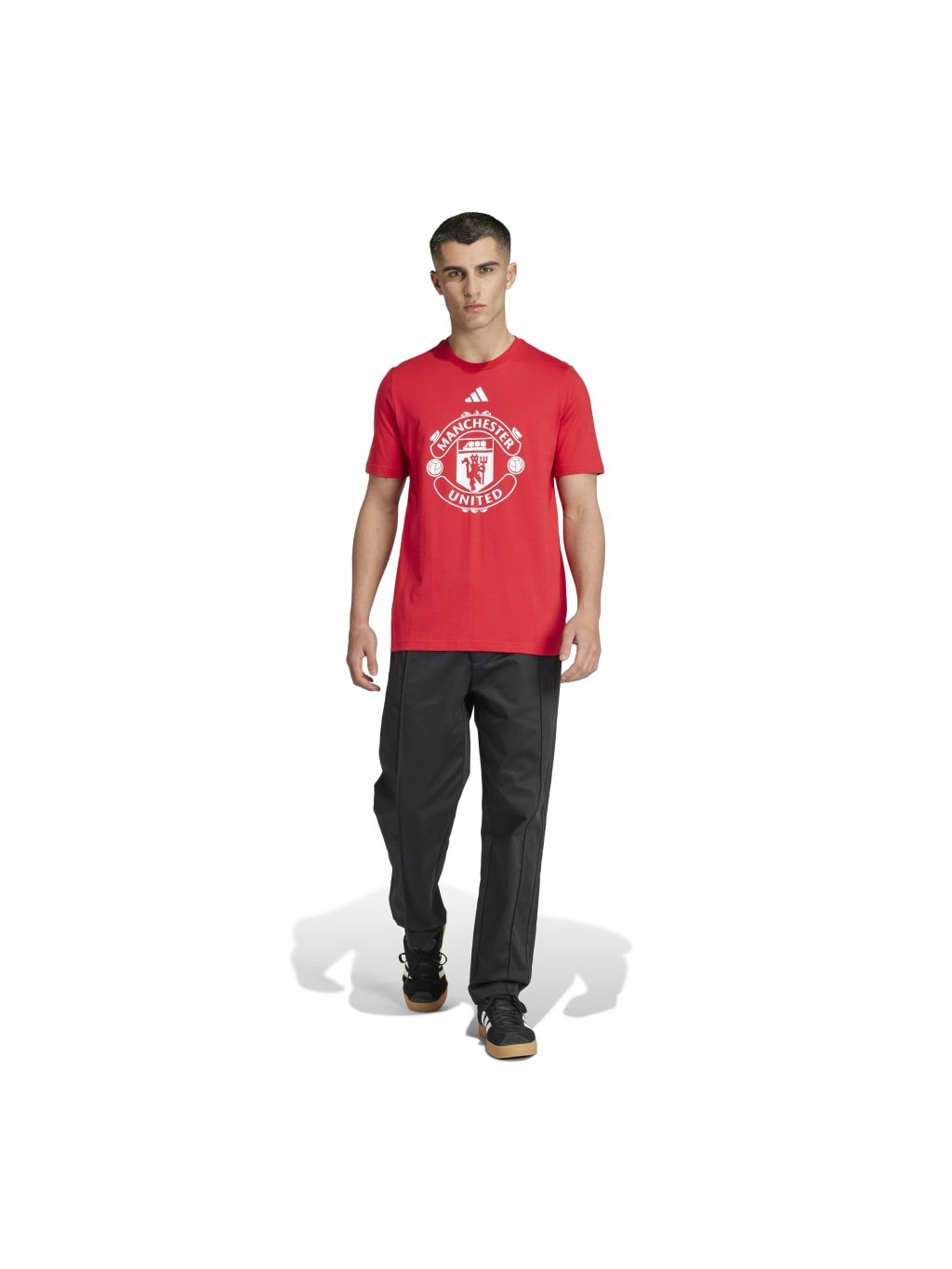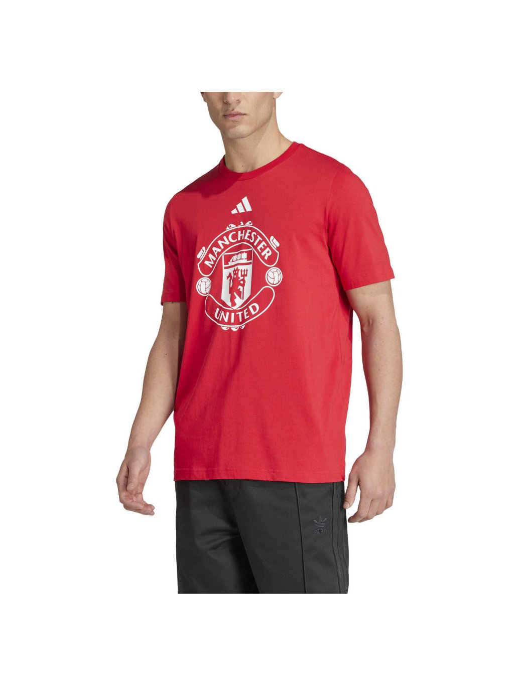 Na přední straně tohoto fotbalového trička adidas je umístěn ikonický znak Manchesteru United. Oblékněte si ho a dejte všem vědět, který tým podporujete. Měkký bavlněný úplet vám zajistí pohodlí, ať už zpíváte na Old Trafford nebo relaxujete doma. S tímto nezbytným kouskem pro fanoušky můžete kdykoli ukázat své barvy.
