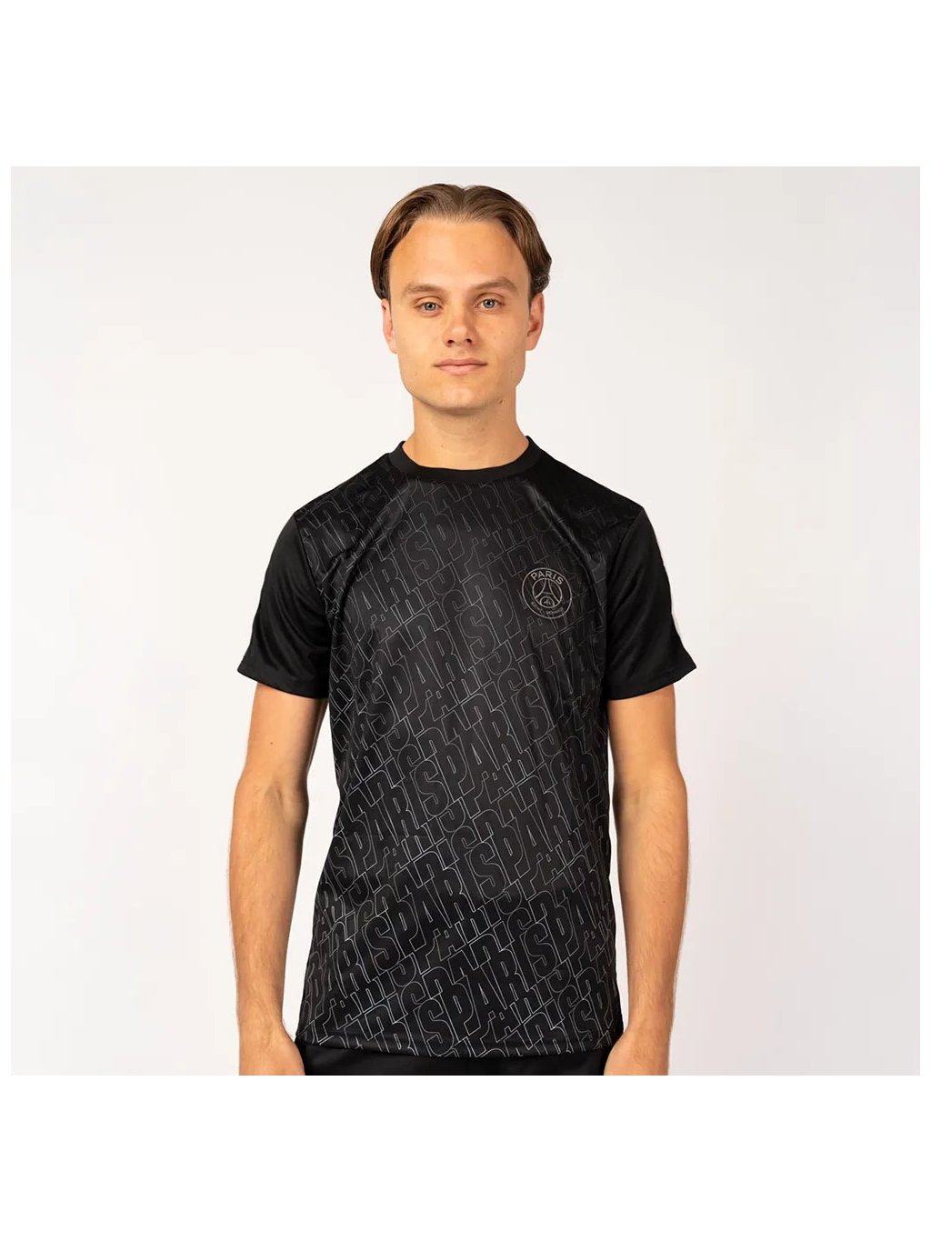 Stylový černý dres Paris Saint-Germain je ideální volbou pro fanoušky, kteří chtějí spojit eleganci s klubovou vášní. Kombinuje černou barvu se stříbrnými a bílými detaily, přičemž po celé ploše je decentní potisk se jménem „Paris“. Na levé straně hrudi se nachází stříbrné logo PSG, které dodává dresu prémiový vzhled.