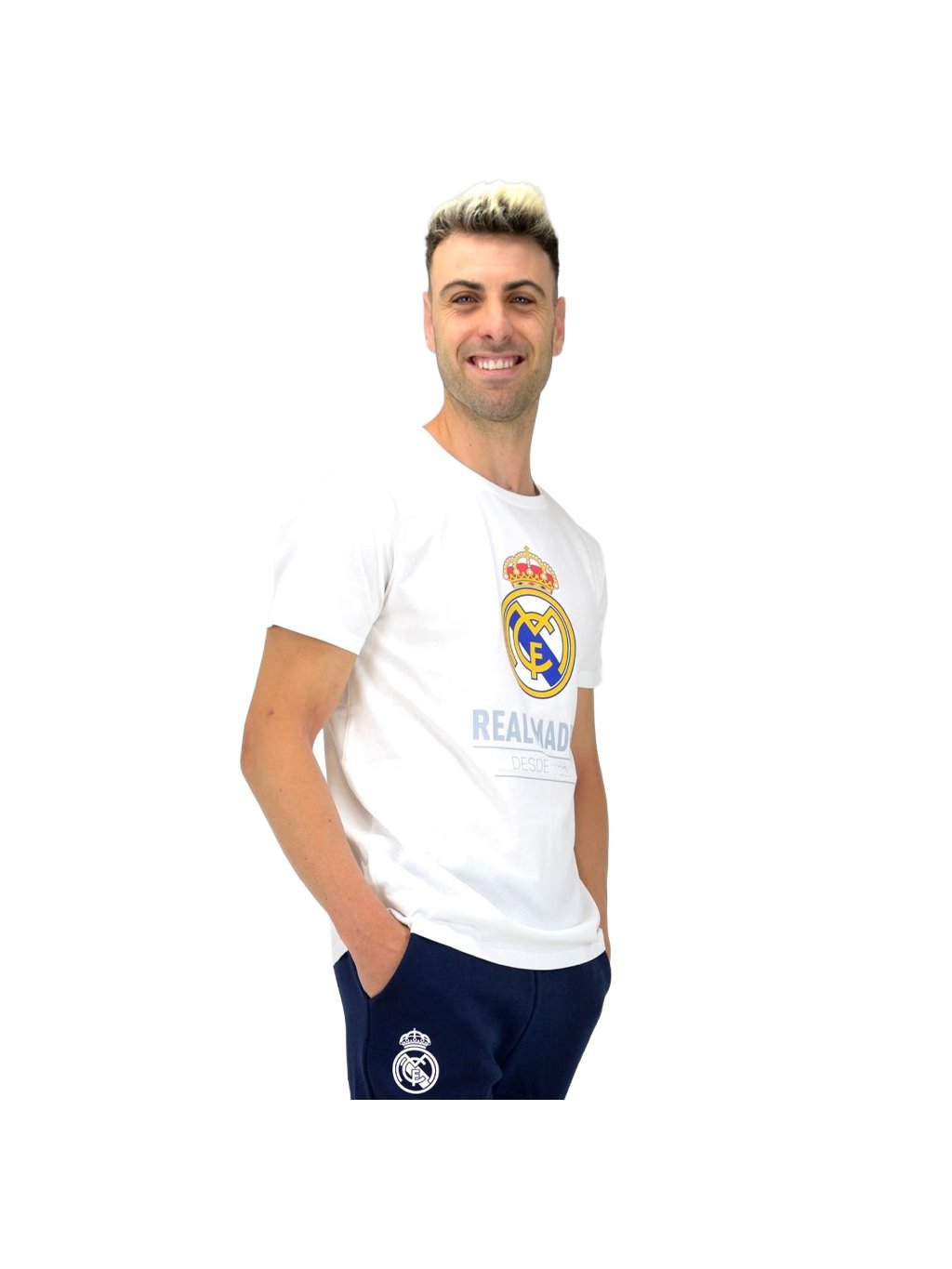 Bílé tričko Real Madrid – klasický design se znakem klubu.