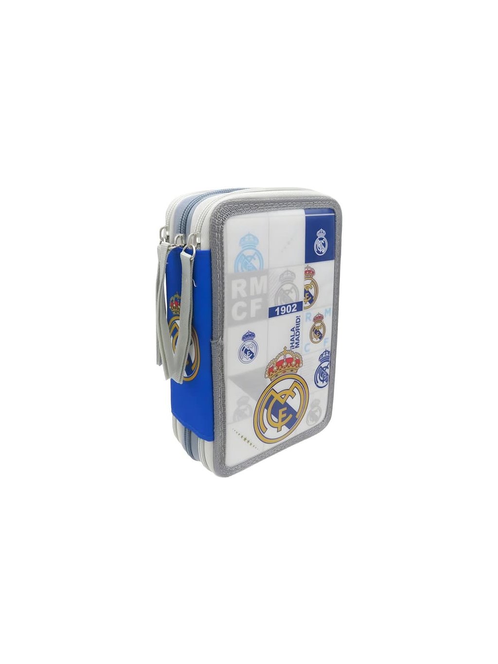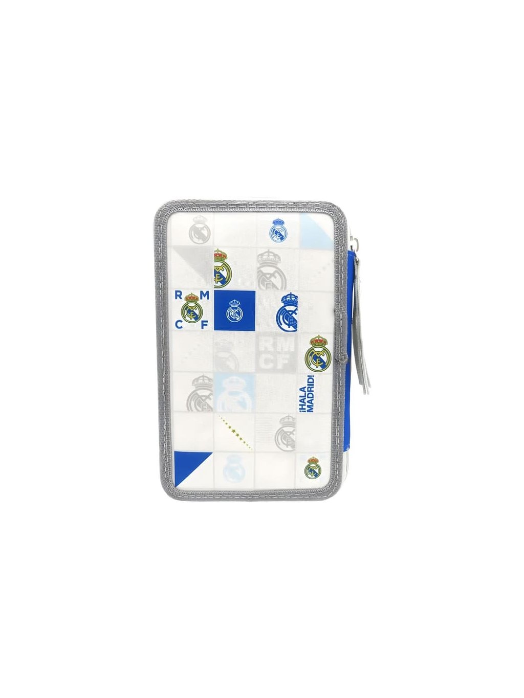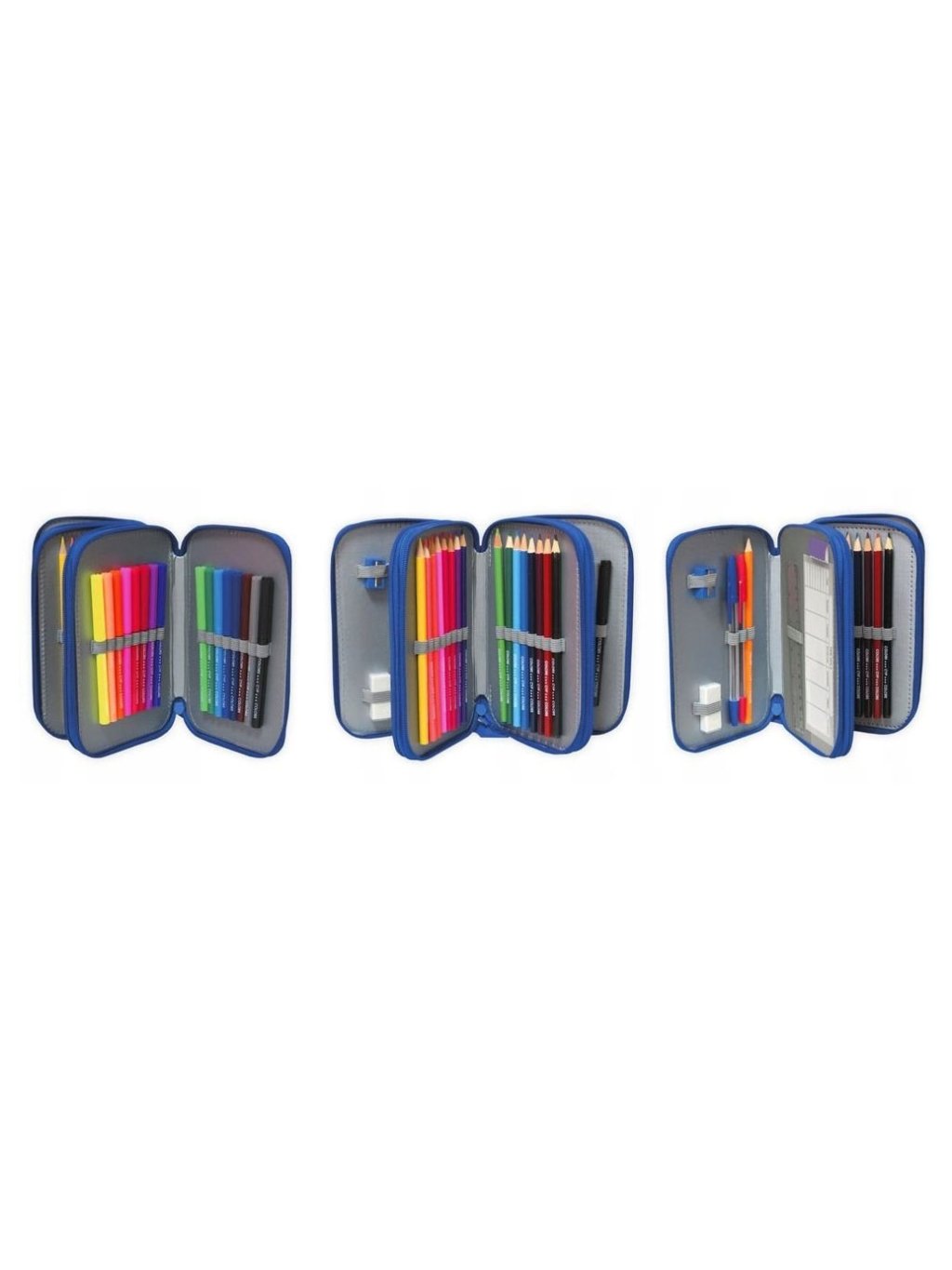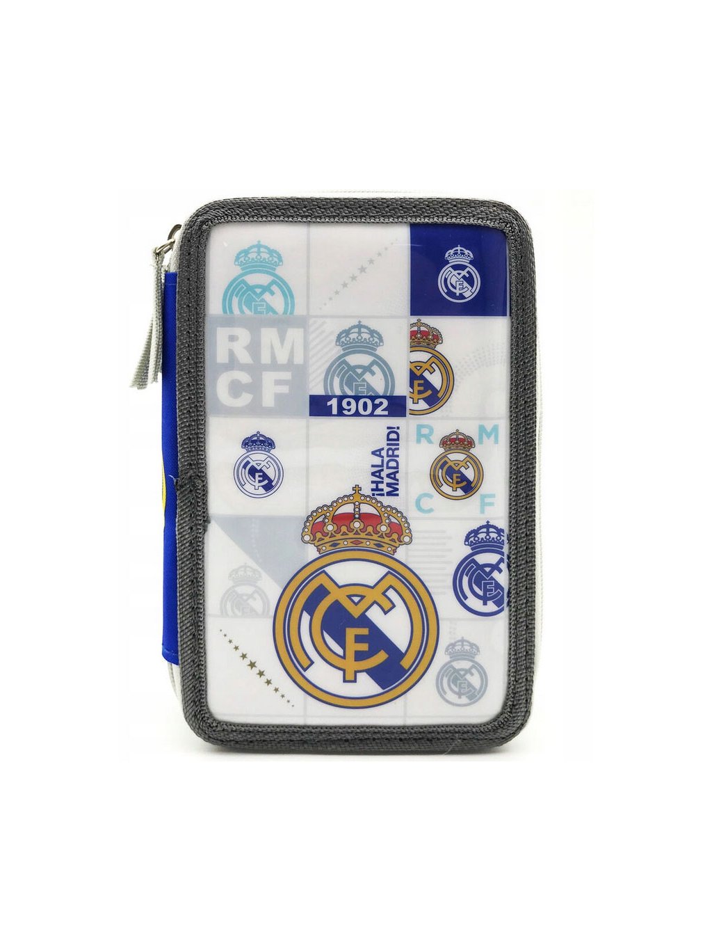 Trojitý penál Real Madrid je kompletní školní pomůcka s třemi zipy a třemi oddělenými přihrádkami. Obsahuje celkem 39 kusů: 16 barevných pastelek, 16 fixů, 2 kuličková pera, 1 tužku, 1 gumu, 1 ořezávátko, 1 pravítko a 1 školní rozvrh. Díky páskům lze penál rychle a snadno otevírat a zavírat. Tento penál je ideální pro fanoušky Realu Madrid, kteří chtějí mít své školní potřeby stylově uspořádané.