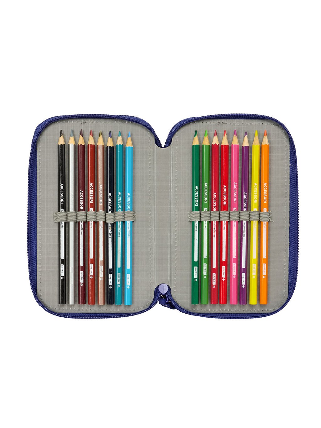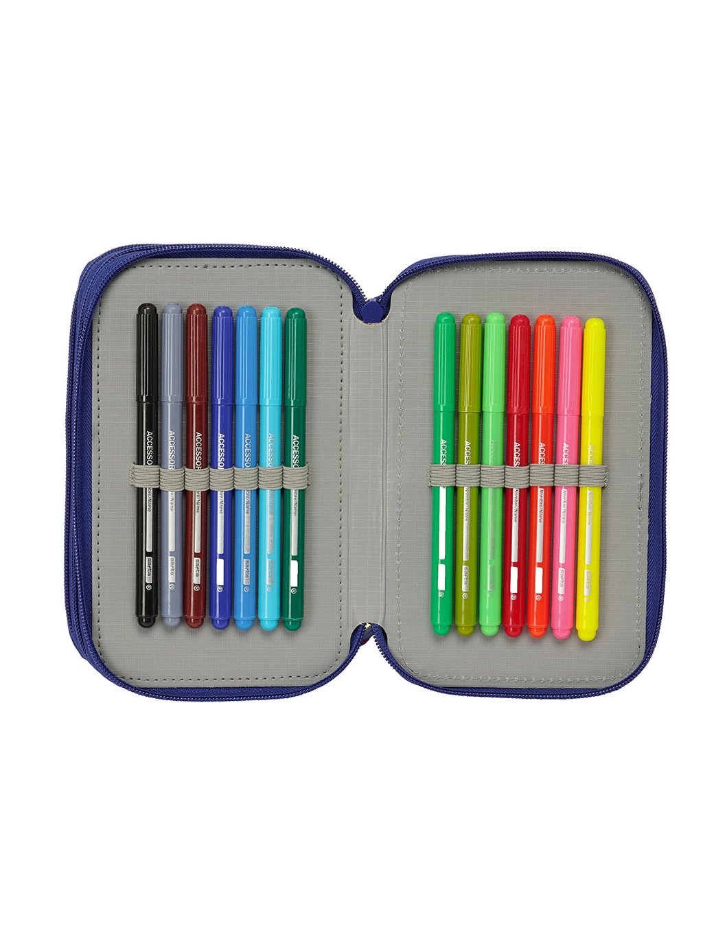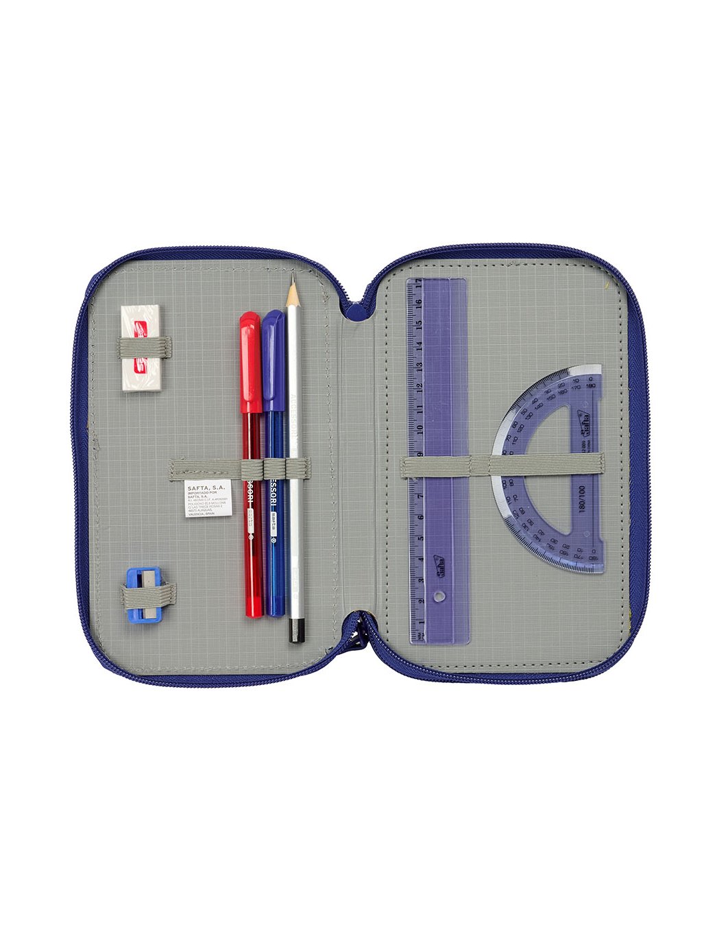 Penál FC Barcelona je ideální pro fanoušky fotbalu, kteří chtějí kompletní školní výbavu v jednom praktickém balení. Penál obsahuje 37 kusů: gumu, grafitovou tužku, modro-červené pero, ořezávátko, modrou pravítko a úhloměr v prvním oddílu, 16 barevných dřevěných pastelek ve druhém oddílu a 14 barevných fixů ve třetím oddílu. Má rozměry 125 × 55 × 195 mm a objem 1,3 litru.