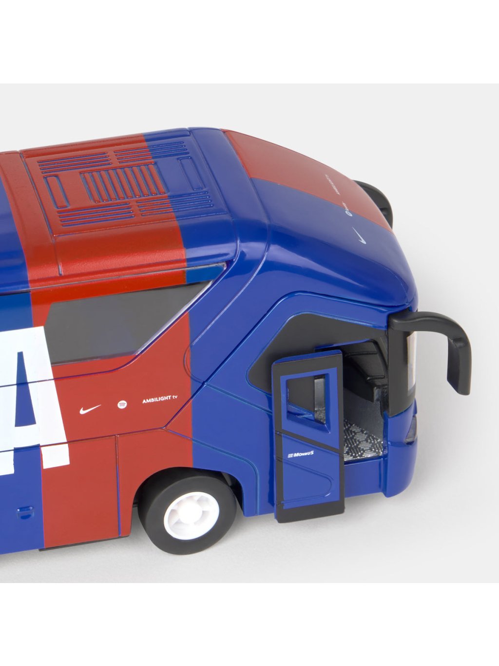 Detailně zpracovaný kovový model klubového autobusu FC Barcelona potěší malé fanoušky i sběratele. Autobus má otevírací boční dveře a je vybaven zpětným třecím pohonem (reverse friction), díky kterému se po zatažení sám rozjede. Pevná kovová konstrukce zajišťuje vyšší odolnost a realistický vzhled.